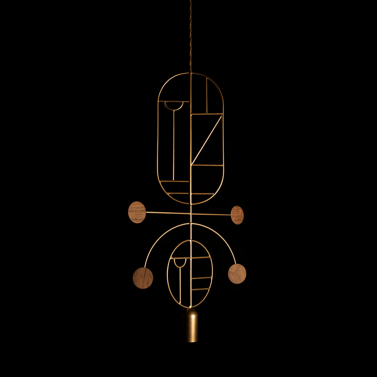 Wooden Dots Suspension Lamp: Oval + Circle with Stem
