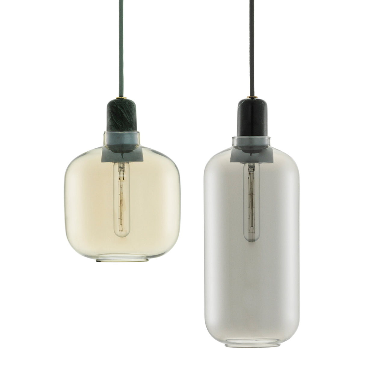 Get Amp-ed up! Danish designer Simon Legald has fashioned his Amp Lamp in the shape of old amplifier tubes from a 1960s radio. The familiar oval form and the glow of the lamp is an obvious reference, of course. Rendered in contrasting materials of delicate glass and luxurious marble by Normann Copenhagen, Amp more than transcends its humble origins.