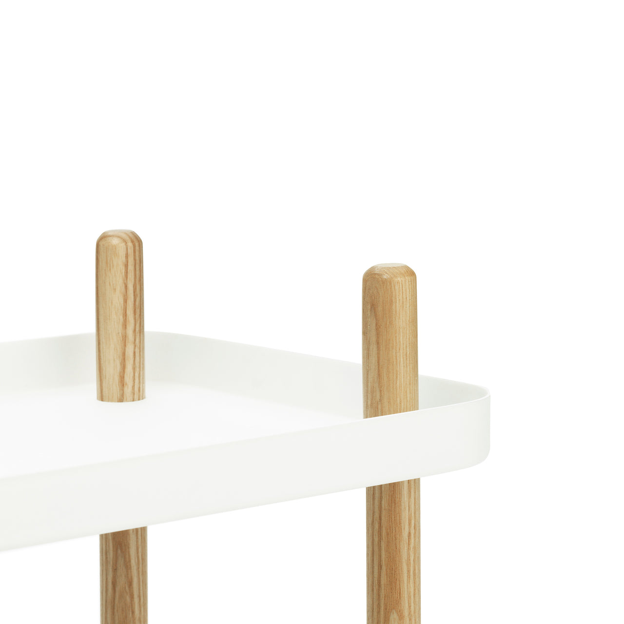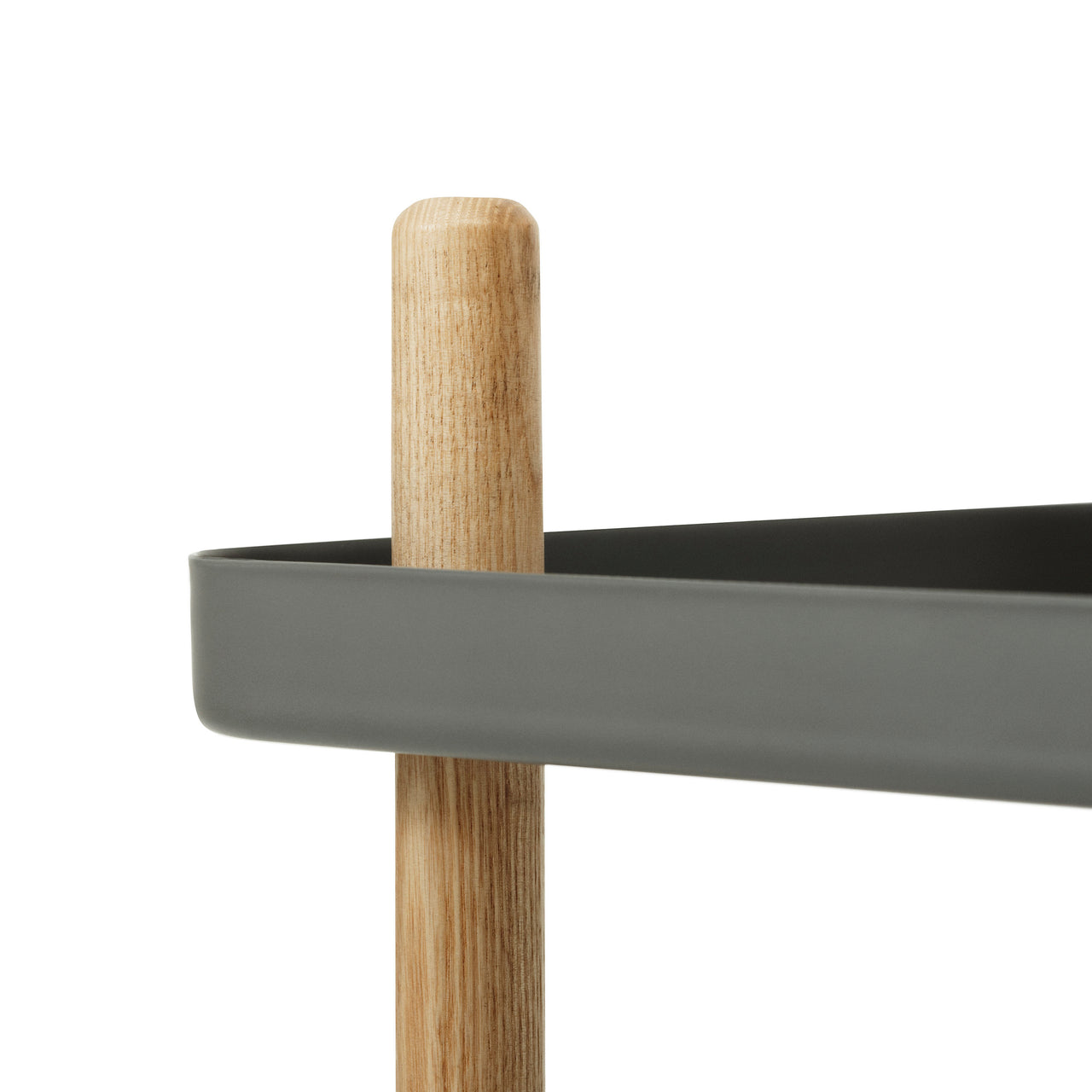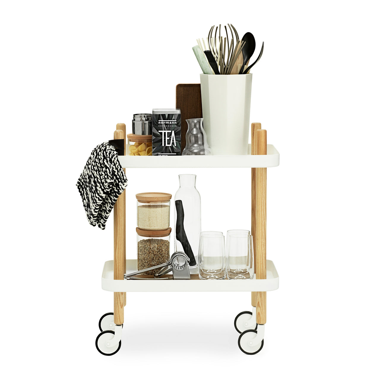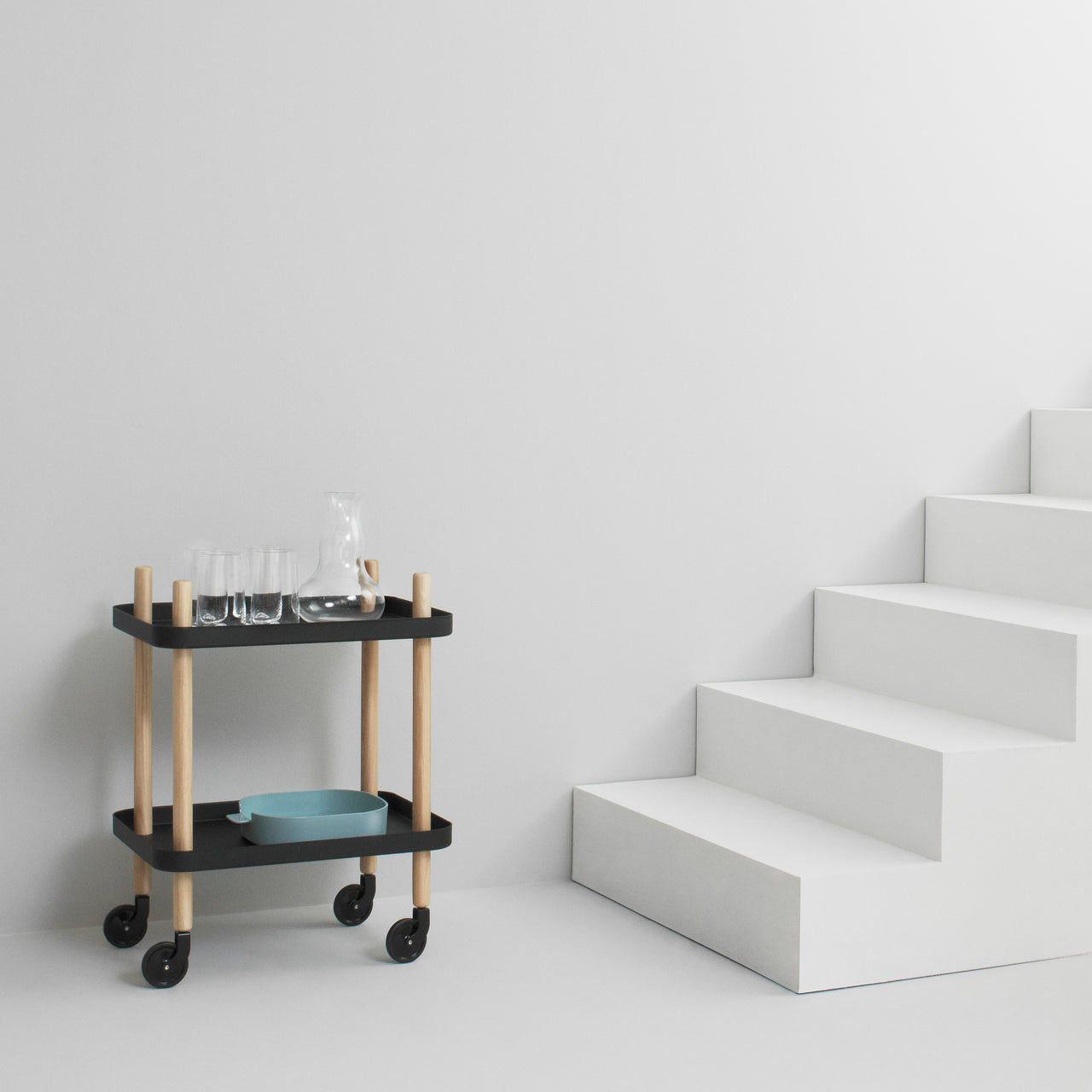 Ideal as a tea cart or end table or even nightstand, this mobile table can move in every direction. Simply pull one of the four ash wood "handles," the posts which serve as legs—on wheels. The matte color softens the effect of the steel surface, adding to its beauty. "Designing is an interaction between craftsmanship and industry, and both elements need to come together," says young designer Simon Legald, who graduated from the Royal Danish Academy of Fine Arts in 2012. His concept is realized by fellow Danes Normann Copenhagen. "Block is a simplification and modernization of the well-known tray table."