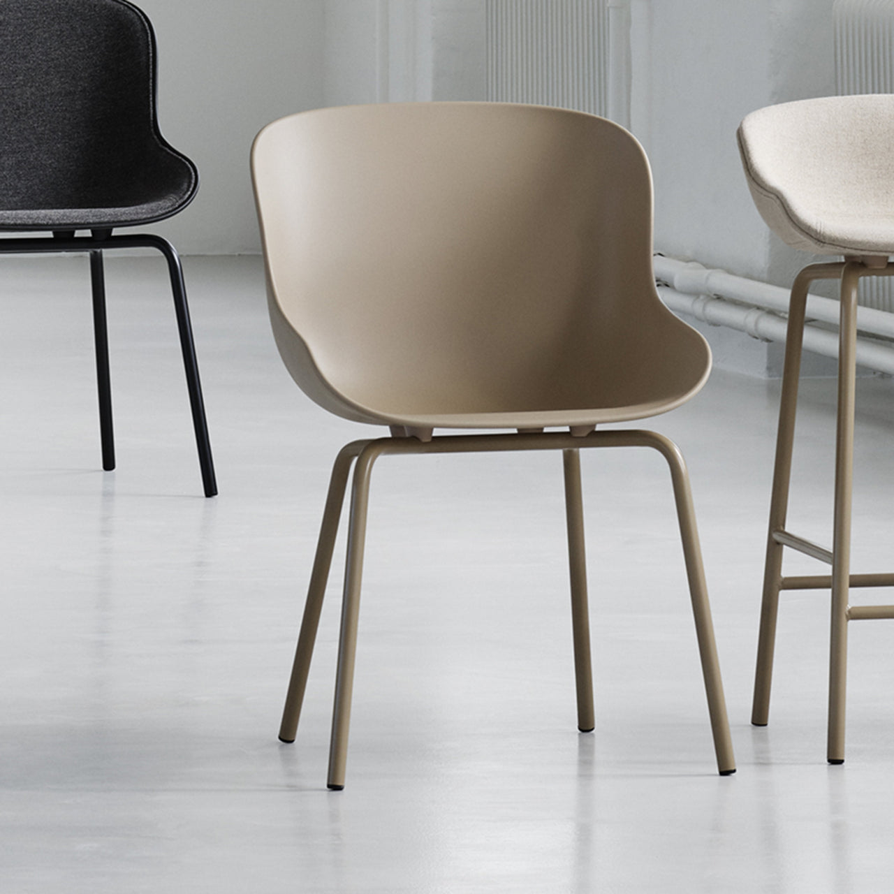 Inspired by the Danish concept of hygge, designer Simon Legald likens his Hyg to a cozy embrace, with an ample seat and higher sides made for snuggling. The molded chair in pressed polypropylene has an appealingly organic silhouette and a generosity of proportion that allows for a wide range of relaxed seating postures. "A lot of effort has gone into sculpting the shape to provide rest and support for the human body, to make it comfortable to sit in, basically," says the designer.