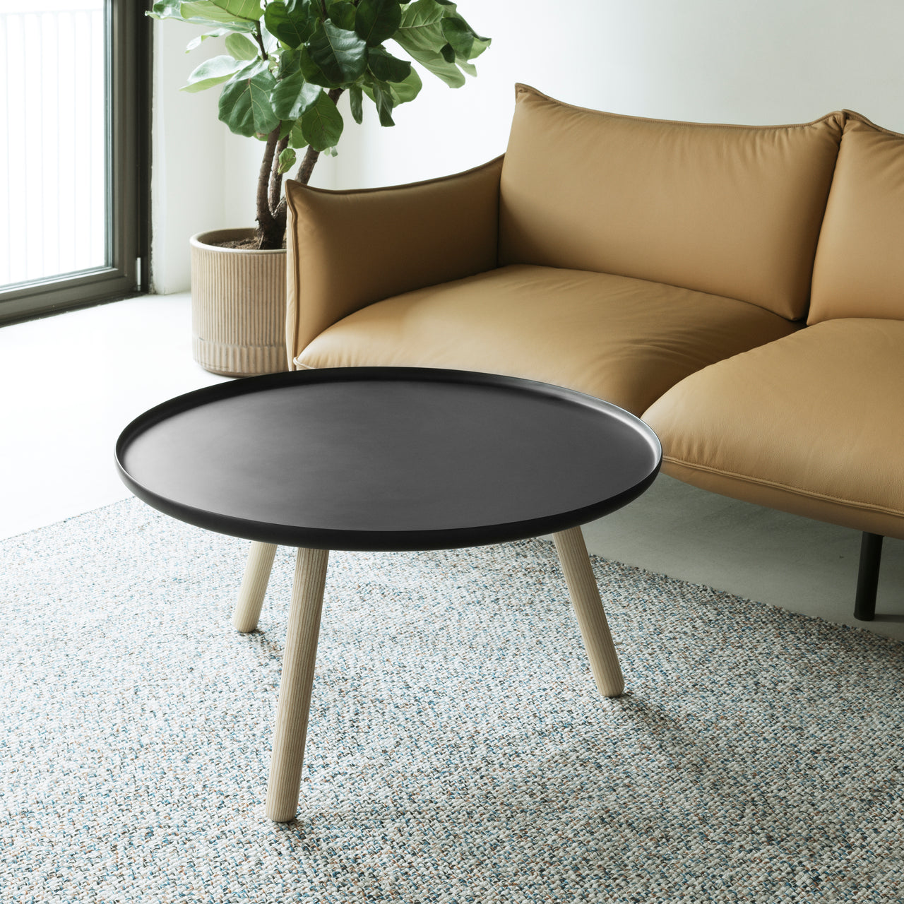 Tablo or tableau? Normann Copenhagen's large round Tablo Table appropriates a bit of playfully fractured Franglais but its name means the same as the old-school French version-a deliberate grouping that invites attention. Tablo beckons in justly-renowned Danish minimalistic fashion, juxtaposing Nicholai Wiig Hansen's curved-edge plastic tabletop with stark wooden peg legs. His on-point proportions make Tablo a big style statement from just a couple of carefully edited elements. The nuts and bolts are nominal too, but equally important to the designer. Screw-in legs make for quick, tool-free assembly and the unit is flat-packed for easy and environmentally-conscious shipping. "The design needs to both be useful and solve a basic need, without compromising the visual expression" Nicholai says."Being easy to assemble is therefore part of Tablo's function."