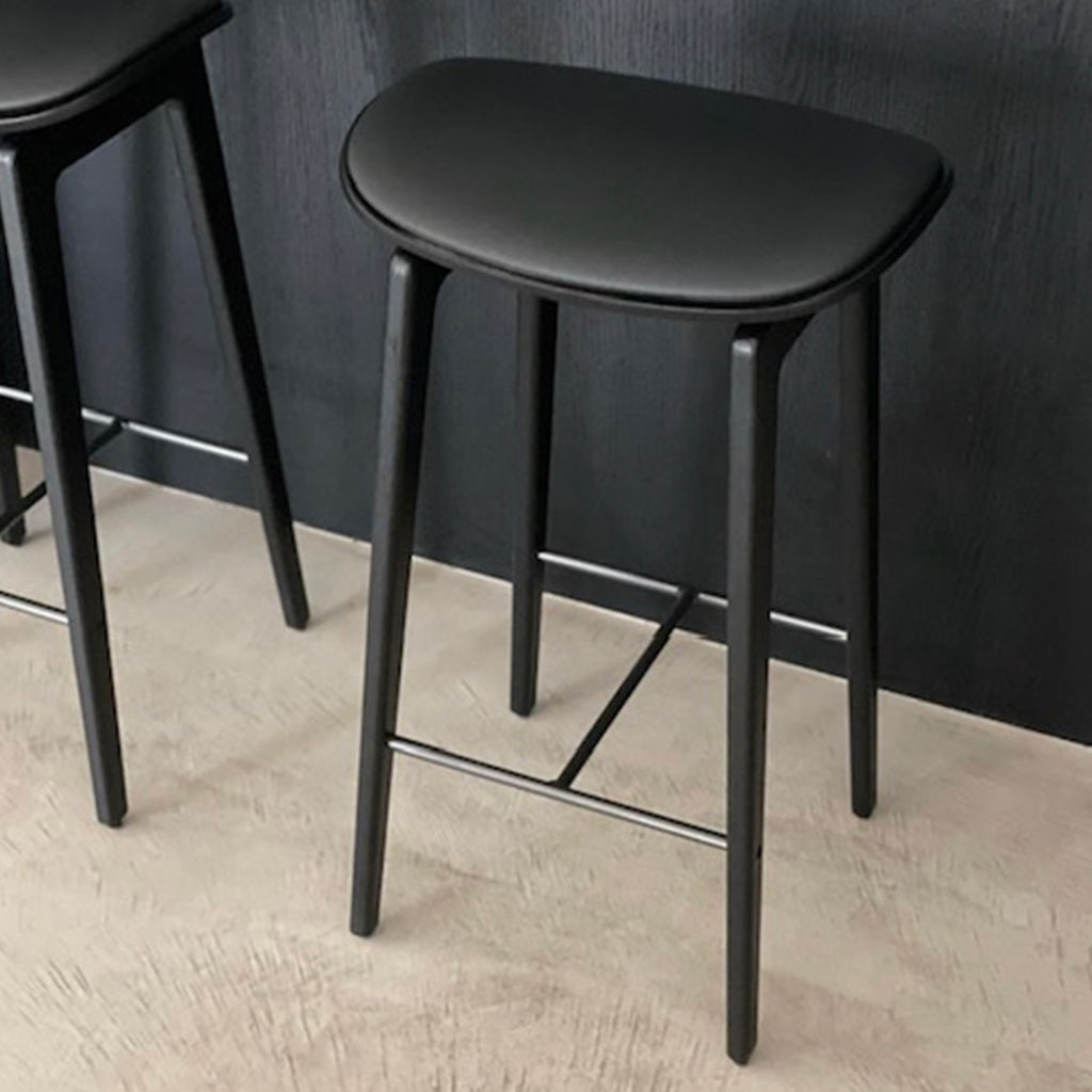 Inspired by classic Danish elementary school chairs, the NY11 Bar + Counter Stools frame is made from solid oak, and the seat is crafted from laminated oak veneer. Available in four finishesnatural, light smoked, dark smoked, and black oakthe stool has a timeless design. This seat upholstered variation is available in a curated range of high-performance fabric and leather. The integrated steel footrest ensures added support and utility, making it suitable for home kitchens or public spaces.