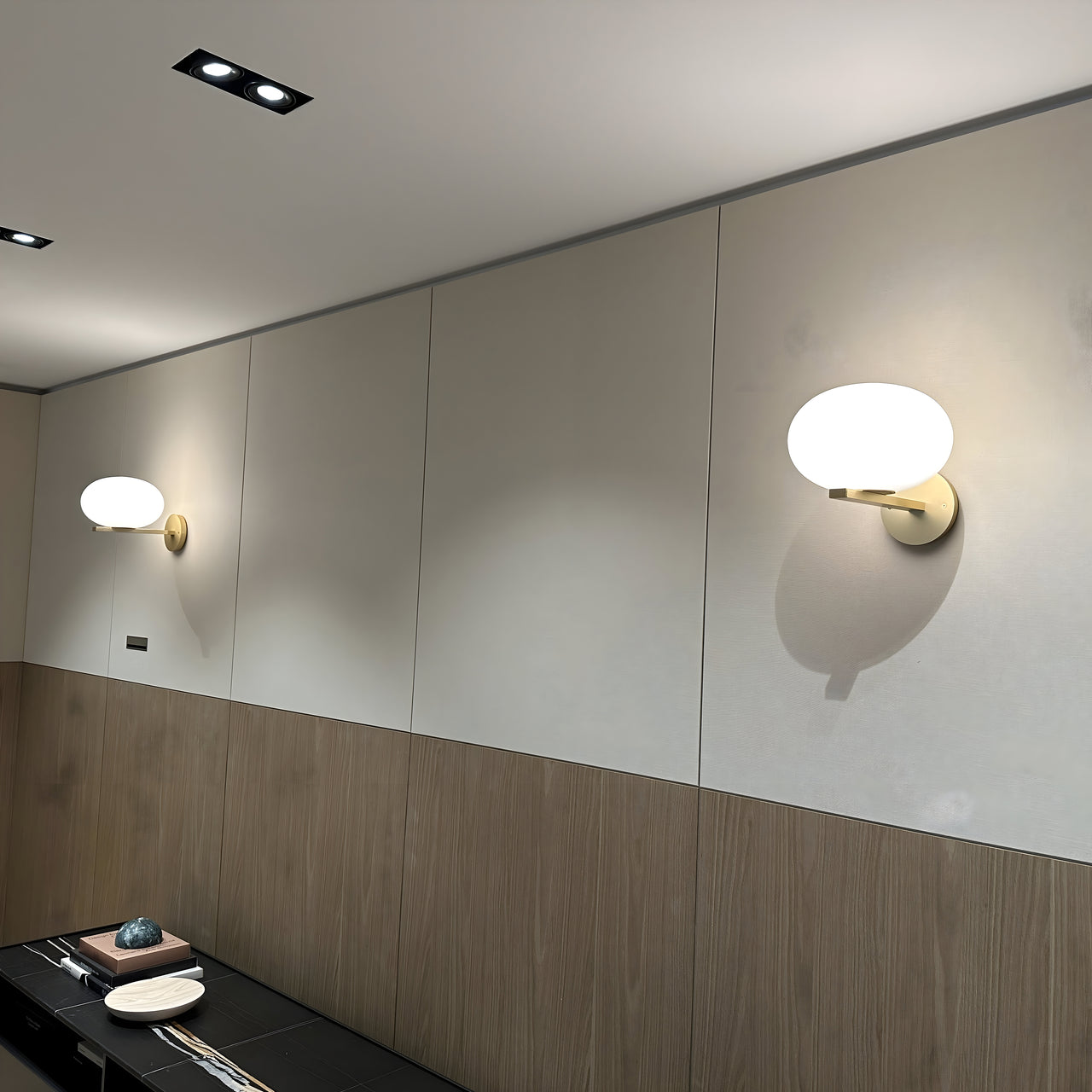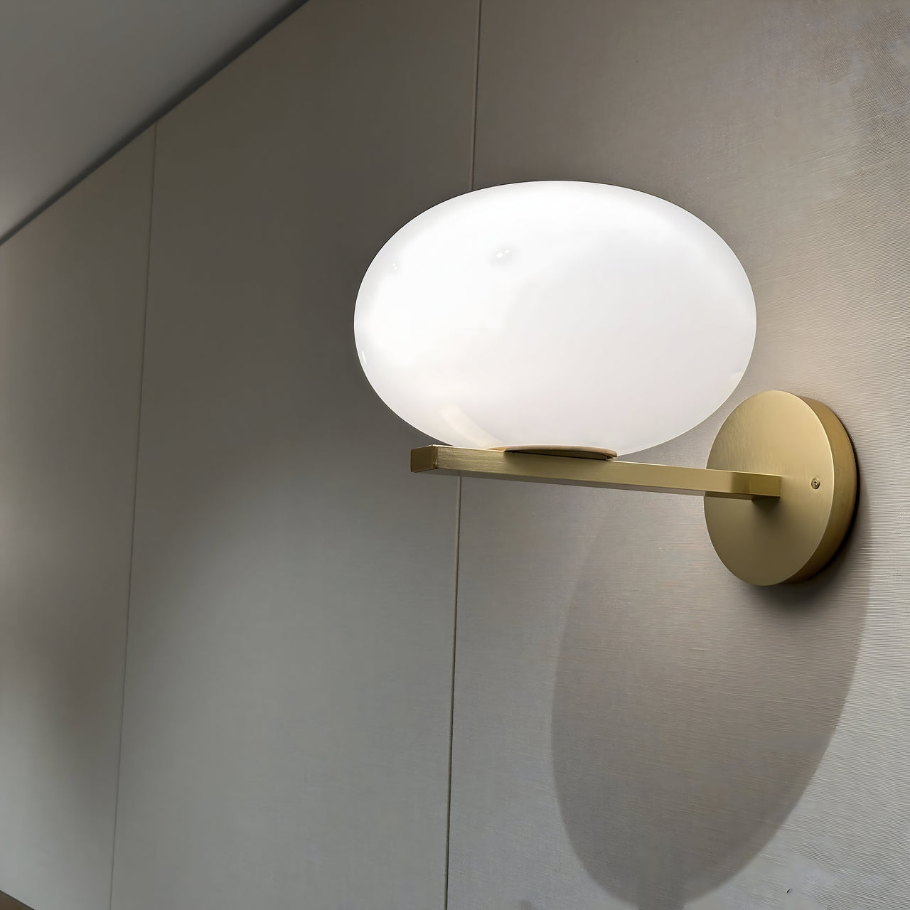 Designer Mariana Pellegrino Soto’s imagination was inspired by a drop of water—with Alba’s similarly shaped mouth-blown shade taking form in polished opaline glass. Contrast comes in the geometric wall mount fashioned in satin-finish brass, all rendered by Oluce, named an Italian Historic Brand for its more than 70 years of lighting innovation.
