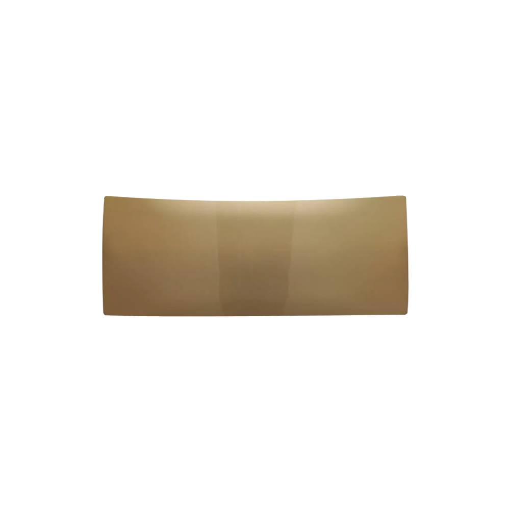 The Lens Wall Lamp by Oluce, designed by Francesco Rota, features a concave metal screen that creates a barrier between the light source and the surrounding area, producing an interplay of light and mirrors. Available in anodic bronze or satin gold glaze finishes, this lamp provides direct up-and-down lighting.