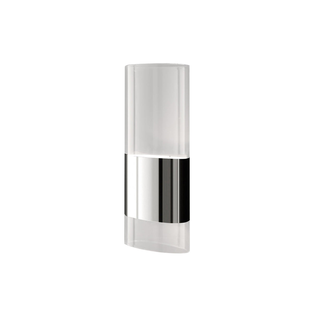 The Line Wall Lamp features an oval Pyrex glass diffuser that emits light both upward and downward, creating balanced illumination. Its polished aluminum structure adds a sleek touch. Designed by Francesco Rota, known for his minimalist approach, this lamp is a compact source of ambient light.