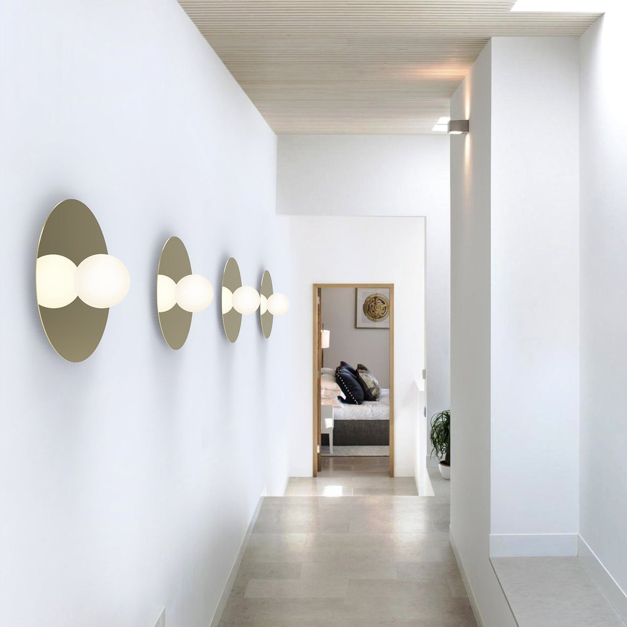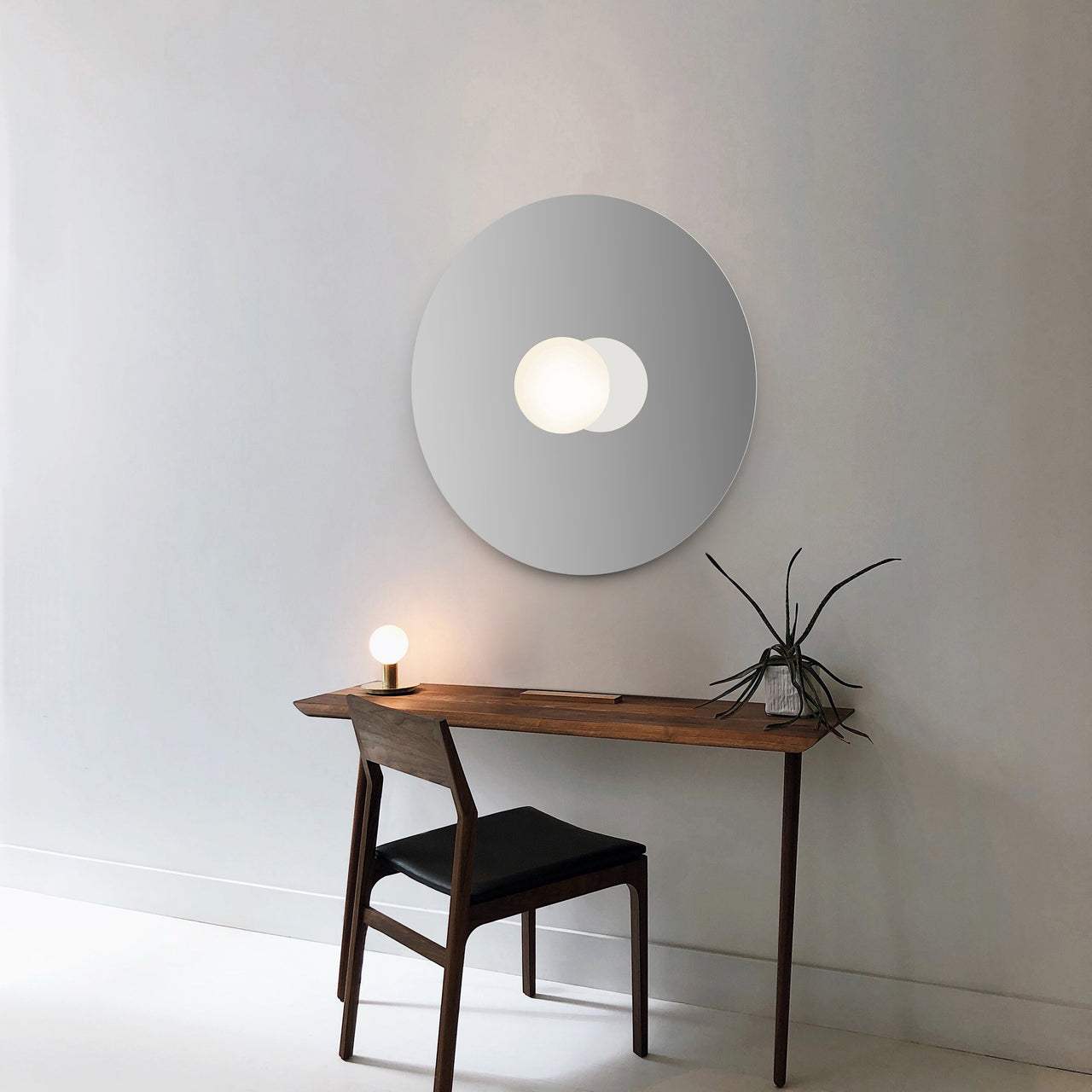 Bola Disc's seemingly magical combination of mirror and globe gets refined to the bare essentials in this version to mount on the ceiling or a wall. Providing both direct and reflected light, the advanced LED system gives the illusion of weightlessness by mirroring its surroundings. The elegant opaline glass globe diffuser is with a disk in in chrome, brass, rose gold or lacquered white finish. Striking on its own or mesmerizing in a grouping, as created by mixing any of the 4 different sizes together.