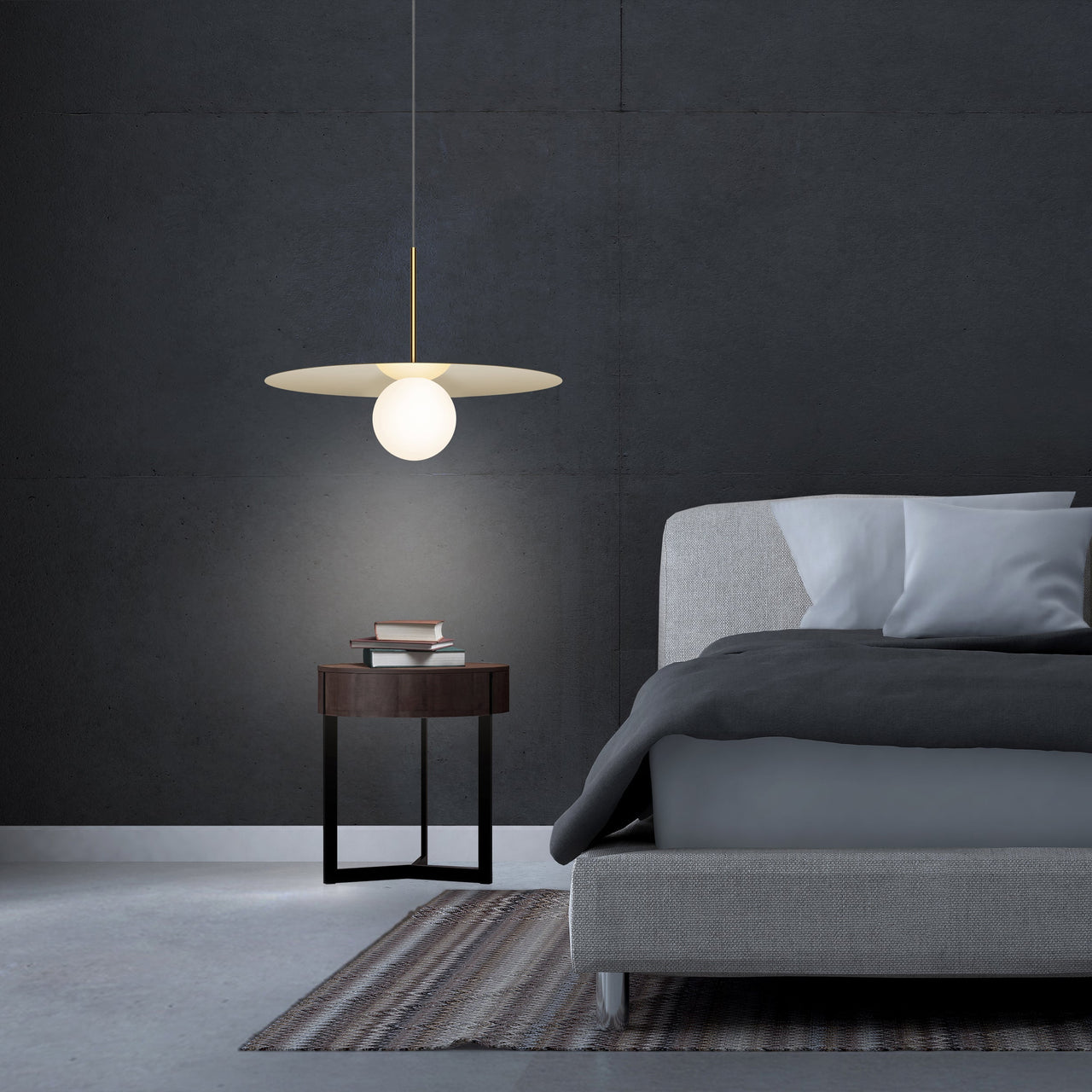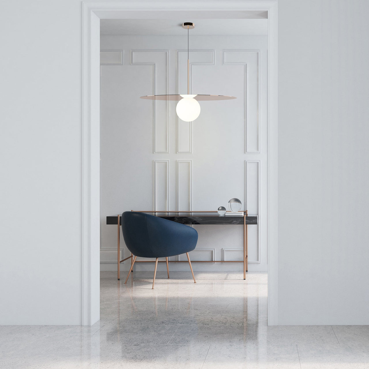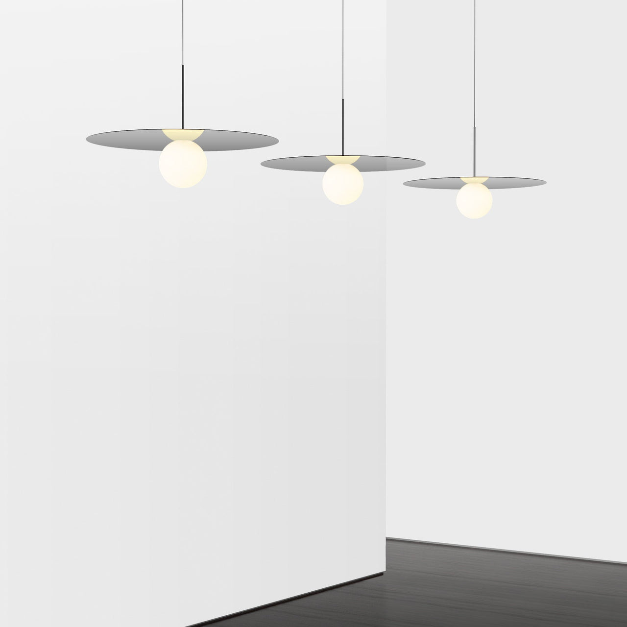 With a circular reflector mirroring its surroundings, Bola Disc gives off a pleasing illusion of weightlessness in an LED pendant fixture. From modern lighting masters Pablo, it provides warm, uniform and ominidrectional illumination that is fully dimmable. In 4 distinct sizes, Bola features a globe diffusor in opaline glass with highly polished disc in chrome, brass, rose gold or lacquered whiteÑand a versatility that allows it to shine on its own or in clustered arrays.