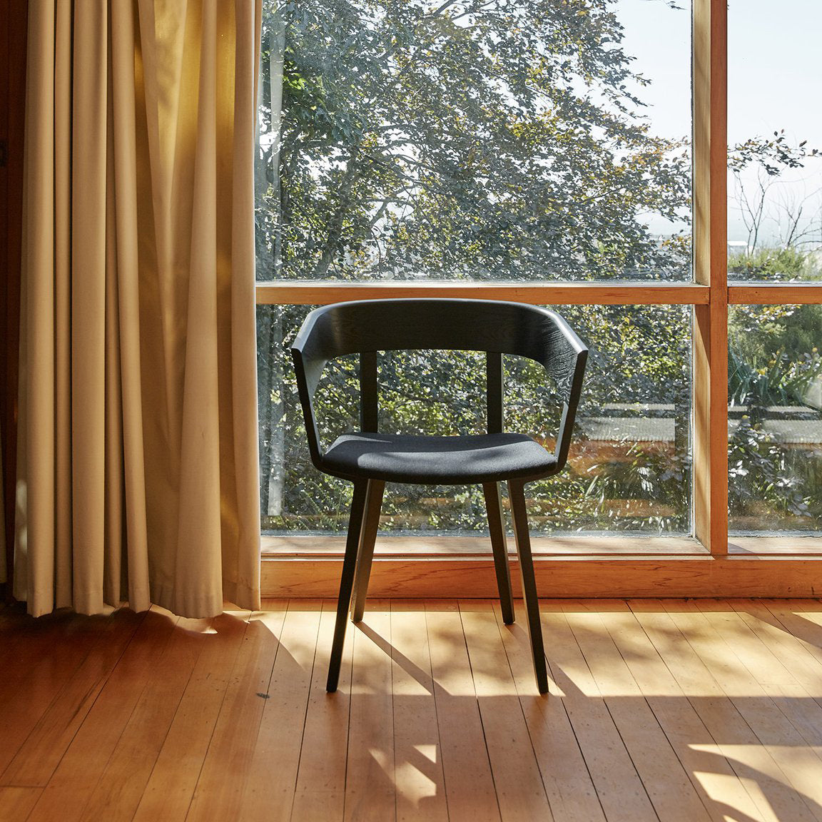 Wonderfully pristine, the Odin Chair from Resident is offered with an elegant upholstered seat option. Melding visual cues from both Nordic and Japanese cultures, New Zealand designer Jamie McLellan mixes materials in a serenely harmonious manner. Four die-cast aluminum legs cradle the curved backrest in laminated solid ash and the slimline upholstered seat, faithfully maintaining the spare silhouette of the original.