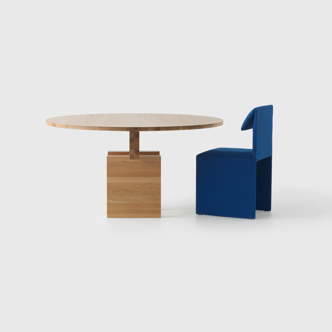 Remarkably poised despite its seemingly unbalanced proportions, New Zealand designer Jamie McLellan adds a round dining version to his stacked-plank table series. Plane's solid engineering assures the center-aligned boards, cross beam and tabletop are securely held together with clever internal bracketing that's smartly hidden away within the solid timber. And the table ships efficiently flat-packed by maker Resident of New Zealand for untroubled easy assembly on arrival.