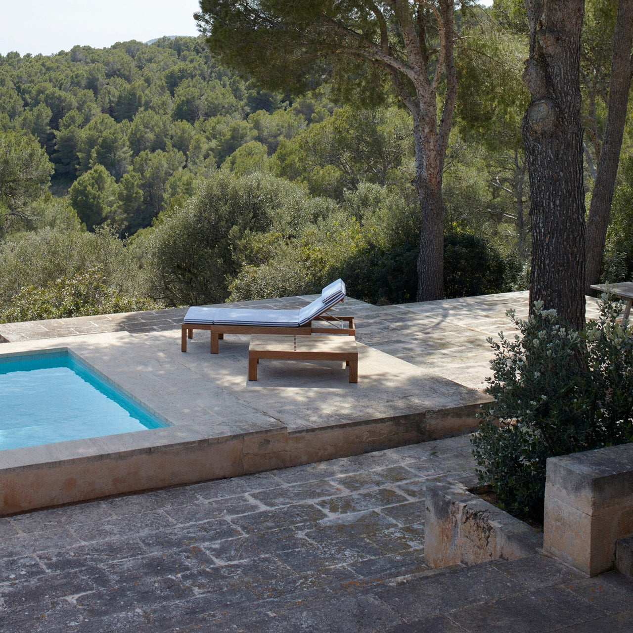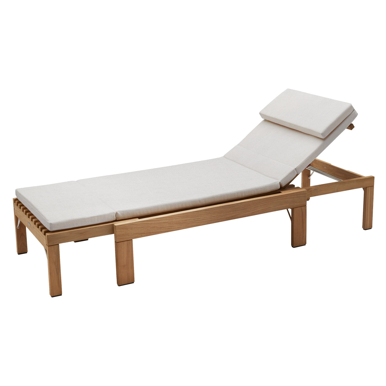 Ingeniously, Danish designer Povl B. Eskildsen combines a sunning chaise, bench and coffee table all in one handsome package. Riviera’s versatile design has become a contemporary classic with its expandable configuration in slatted solid-teak. The lounge can be readily extended in length and a section raised to form the backrest as outdoor needs dictate.