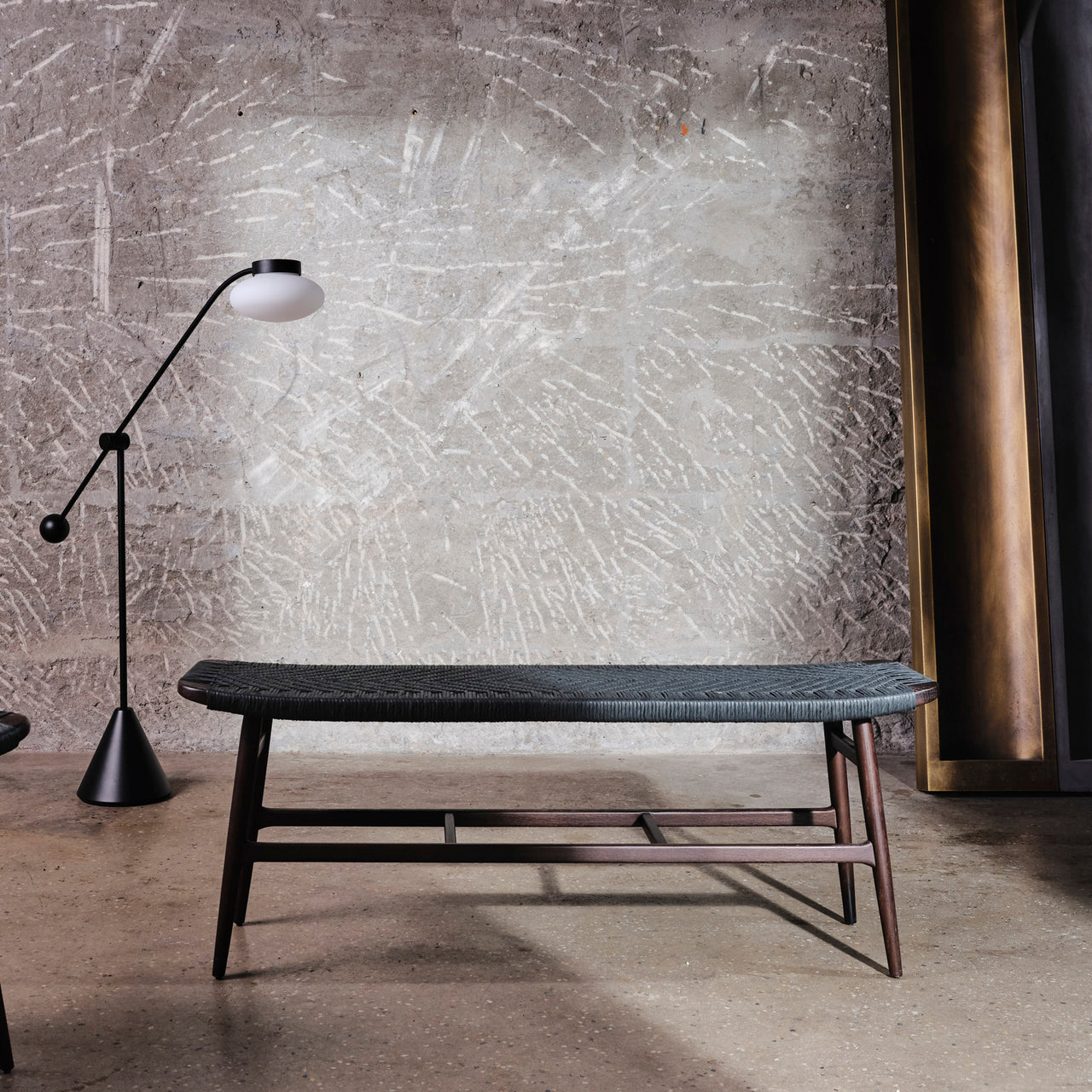 Often a textural feature in Scandinavian design, woven paper cord forms the seat of this solid-timber bench from Signe Bindslev Henriksen and Peter Bundgaard Rützou. Freja from the designer duo known as Space Copenhagen reimagines the idea of seating with a sculptural flair that seemingly melds Nordic warmth with studied Japanese cool. The bench has a distinctive angled-leg silhouette and is offered in solid oak or walnut in an array of varied finishes.