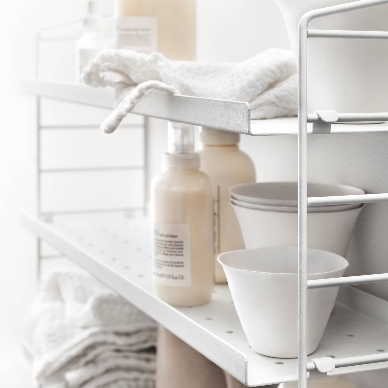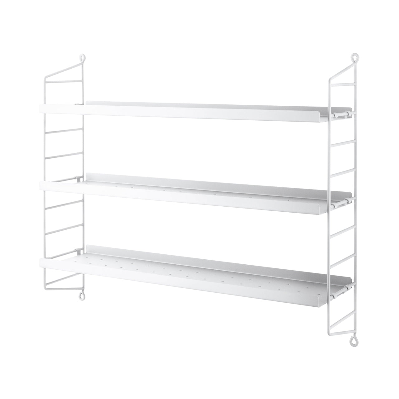 String scales down its variable wire-frame shelving with an all-metal wall version. Pocket is a preconfigured unit with 3 shelves, complete on its own or ready to combine for expanded storage and display needs. Crafted in fine-textured coated steel, it’s another amazingly useful spin-off from the still-relevant system originally designed by Nisse and Kajsa Strinning in 1949.