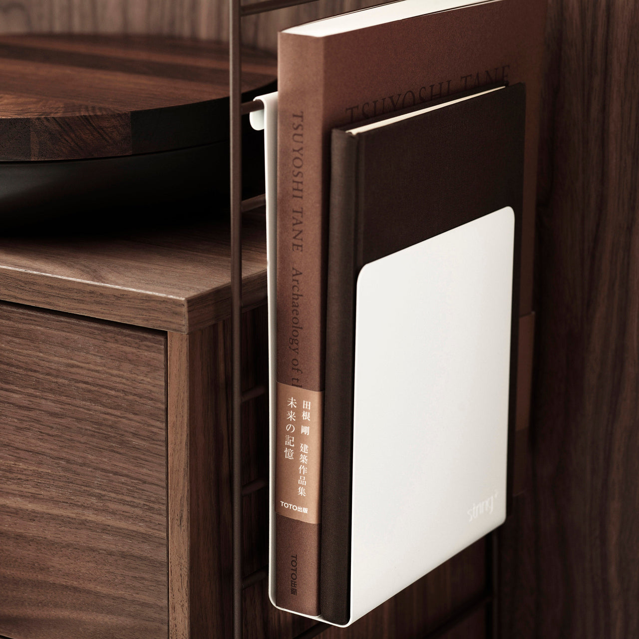 String's magazine holder accessory fits together with both the 20- and 30-cm-deep wire panels from the ever-versatile storage system. Add it to a kitchen setup to keep food magazines and recipes conveniently close at hand or use in a living room or hallway to stash books and magazines within easy reach when settling into a reading corner or alternatively heading out the door. With a clean-lined look, it's available in a choice of 3 powder-coated metal options.
