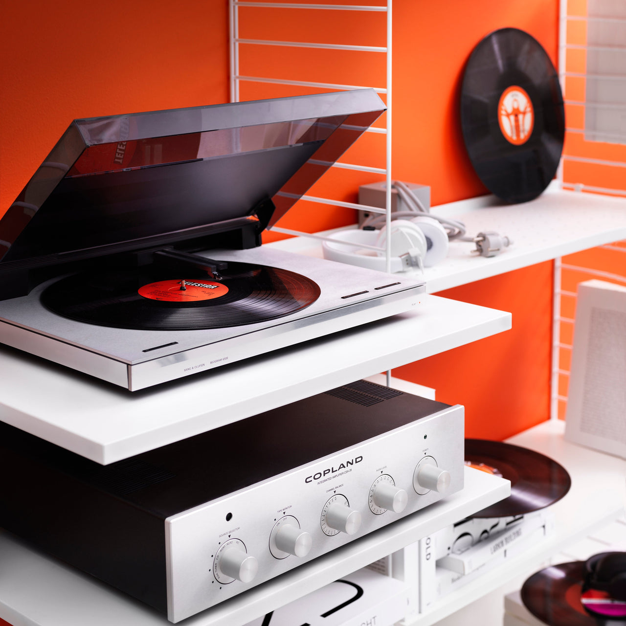 String’s aptly named Media Shelf makes a perfect spot for a vinyl-lover’s turntable setup with a rear opening to let cables and cords disappear out of sight. But It also could easily be used as a work surface, or even an easily accessible drinks serving area. With a lacquer finish, the shelf includes a stabilizing back panel along with installation brackets and fits into String’s standard wire panels.