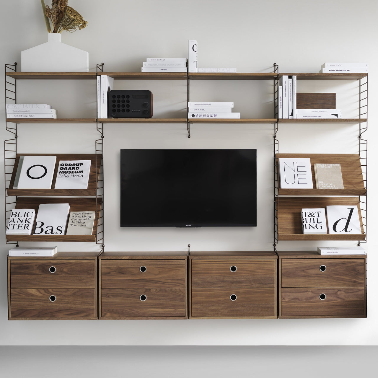 Numbering 3 to a pack, this wood shelving is the heart and soul of String. Choice abounds in the collection’s full range of available woodgrain veneer and painted finishes. It's a testament to the late Nisse Strinning's ingenious modular system—first debuting in 1949—that String is a design aficionado's storage grail still today.