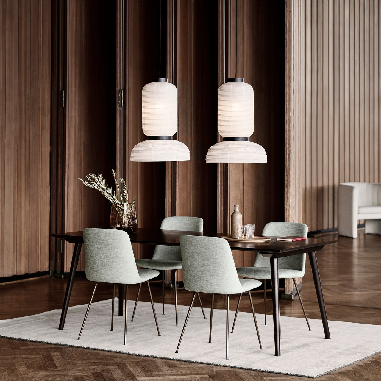 East meets West in the Formakami trio by designer Jaime Hayon. Age-old Asian rice paper lanterns are re-imagined in new forms and proportions with black-stained oak trim. Symbolically, a lamp chases away the darkness by bringing hope, says the Spanish design star about his work for Danish house &Tradition. "...the idea," he notes, "is to bring even more illumination to people everywhere in the world.