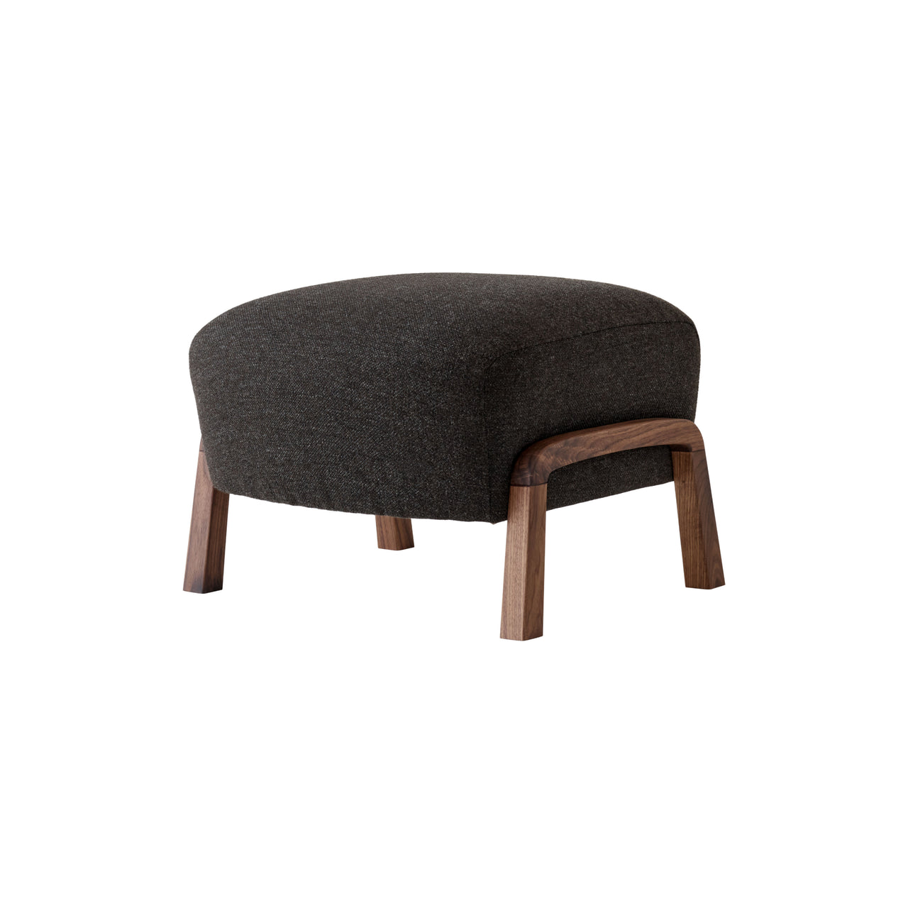 Extending the 1930s aesthetics of the sculptural Wulff lounge chair, a companion pouf is handcrafted with solid oak or walnut legs and offers the same stylish upholstery as its namesake. As a matching footrest for the chair or as a solo perch on its own, the piece boasts &Tradition's fine craftsmanship. The sustainably sourced frame is made from solid beech and plywood and subsequently swathed in HR foam and polyester wadding before a final cladding in fine textiles or genuine sheepskin.