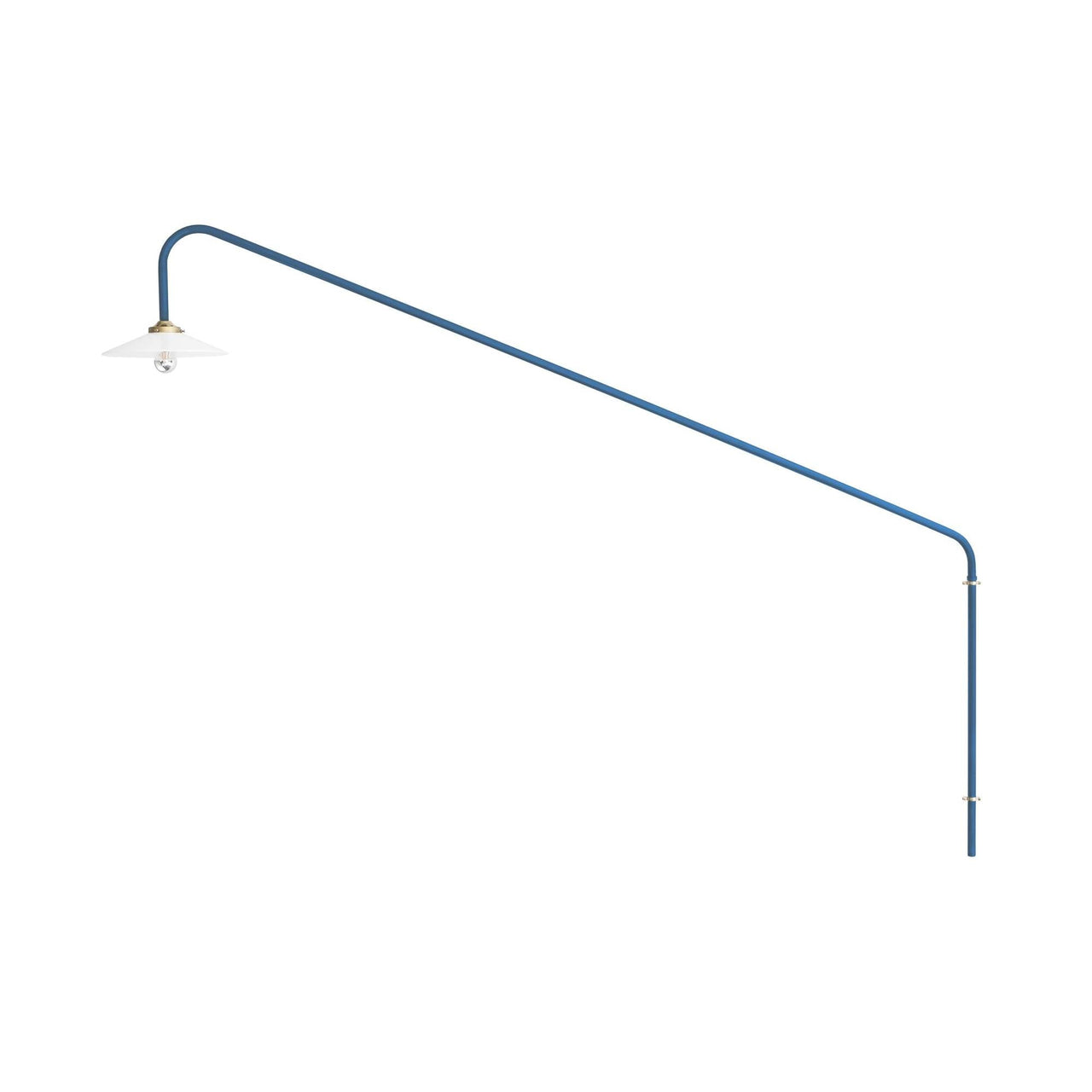 Muller Van Severen’s initial version of their wall-mounted pendant makes a dramatic upward slant. The series was conceived the duo needed a dining table light in a room without a ceiling outlet. The linear fixture makes a statement without dominating a space and is crafted in steel tubing in brass, black or several curated colors.