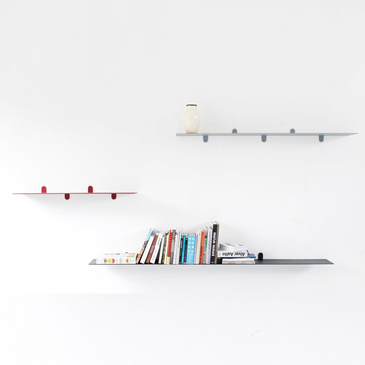 Muller Van Severen elevates the idea of a wall shelf with this spare steel rendition. Finished in gleaming brass or a choice of refined color-ways, it eschews extraneous detail—even the brackets are laser-cut flaps on the edge of the plate itself. N°1 is the shortest of the series and perfect for highlighting a single objet. Or it can be used in multiples for an expansive wall arrangement.