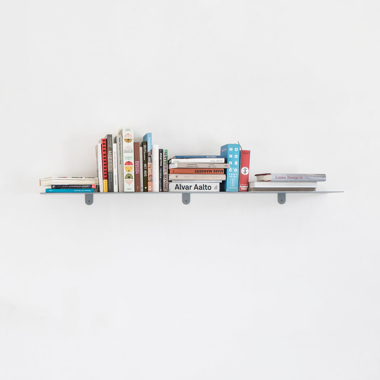A striking 2 meters long (or just over 6 feet), Muller Van Severen’s wall shelf brings stylishly expansive storage or display possibilités to a room. The steel unit N°2 is all sleek lines, incorporating laser-cut flaps that seamlessly hold it in place. Available in a range of edited color choices from calming neutrals to sprightly accents.