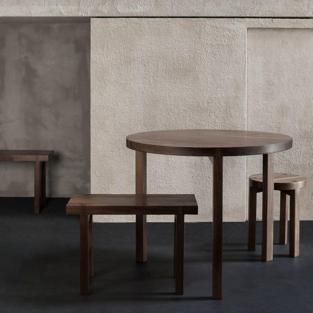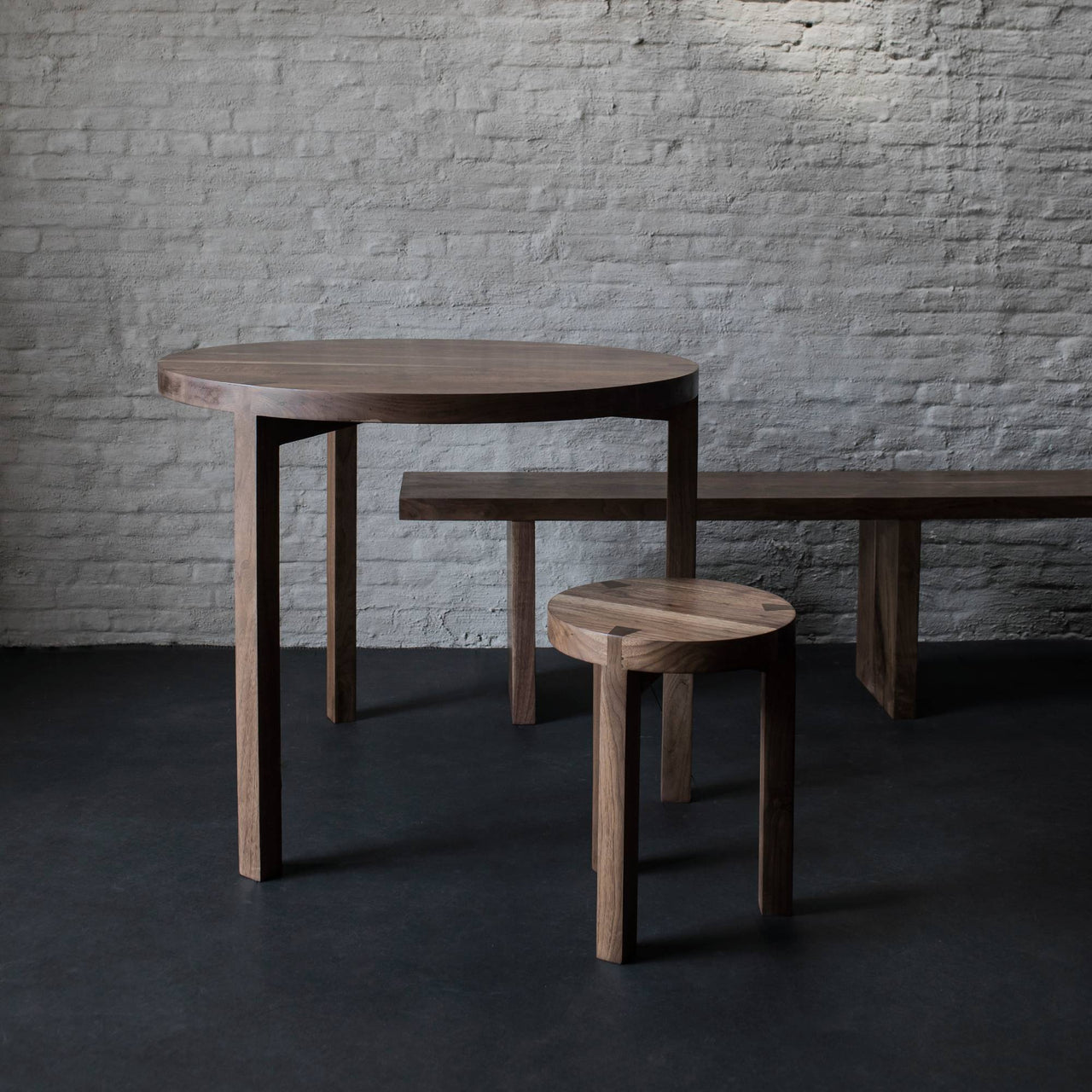 Belgian designer and second-generation cabinetmaker Laura Greindl ennobles her fascination with traditional wood joinery in her Solid Dining Table. Constructed without using any nails or screws, every joint is cut by hand, using chisels and a Japanese Dozuki handsaw for precision. Timelessly simple in concept, the round table is crafted in solid walnut, joining Valerie Objects’ companion bench and stool from the collection (also at A+R).