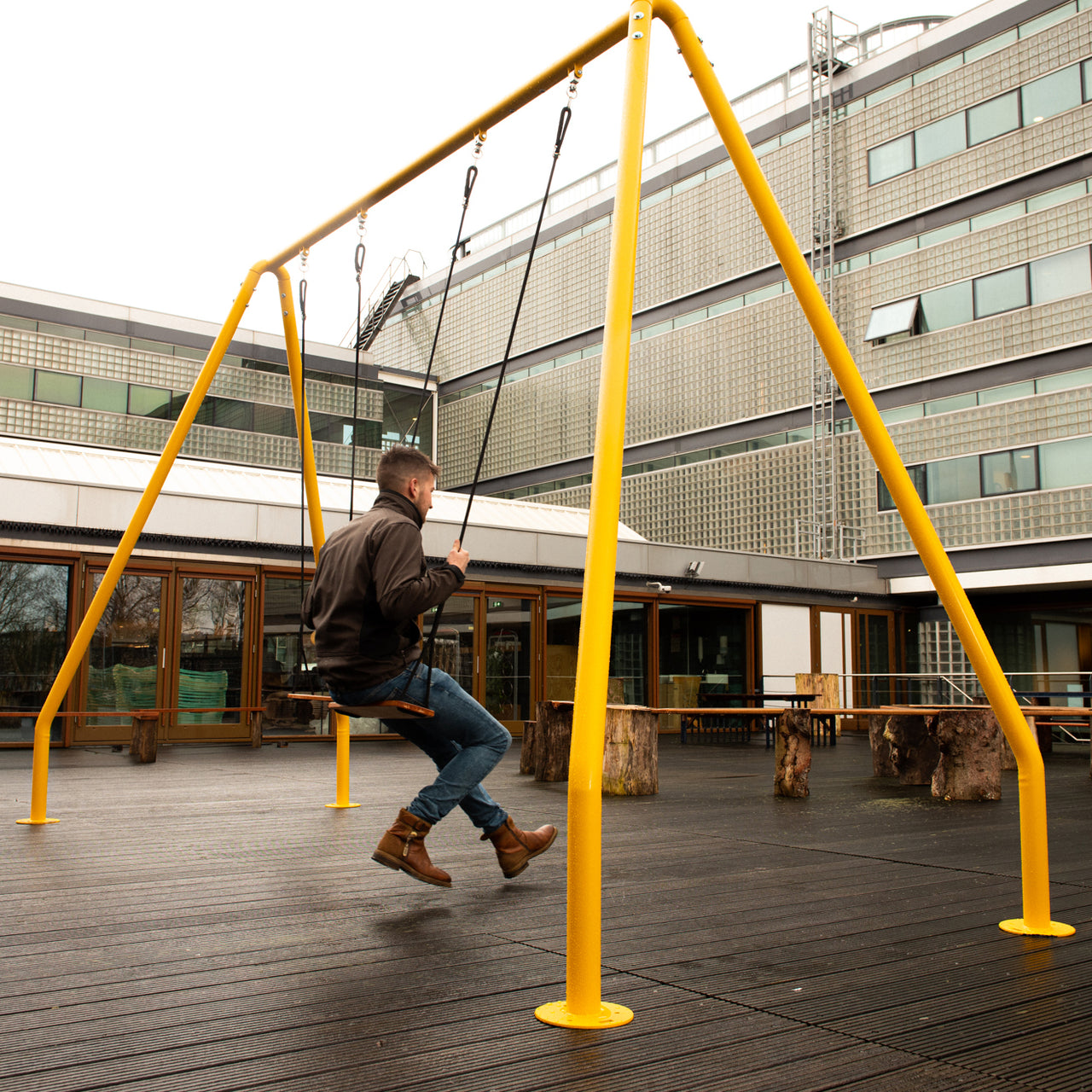 Though it thrills the inner child, Serious Swing is definitely sized for grownups. In playful bright yellow, Weltevree's towering aluminum structure stands nearly 10 feet-tall—with optional garden lights to illuminate the ground below—and its double wooden seats each hold 220 pounds. Not just for the park or plaza, it can also be placed indoors, perhaps in a large office setting to offer space for a casual meeting. As designer Thor her Kulve puts it, “A swing is the ultimate way of experiencing freedom.”