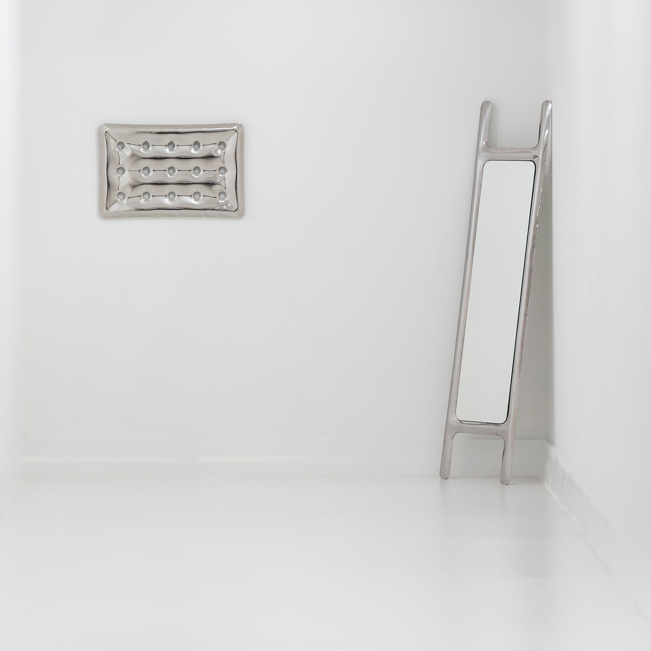 The frame might look pillowy but Drab Mirror’s puffy shape is deceiving: it’s made of high pressure-shaped steel. Oskar Zieta inflates welded sheet steel via FiDU technology to create stable furniture and accessories. Each one-of-a-kind, Drab Mirror simply leans against the wall, to bring unusual dimension to any living space.