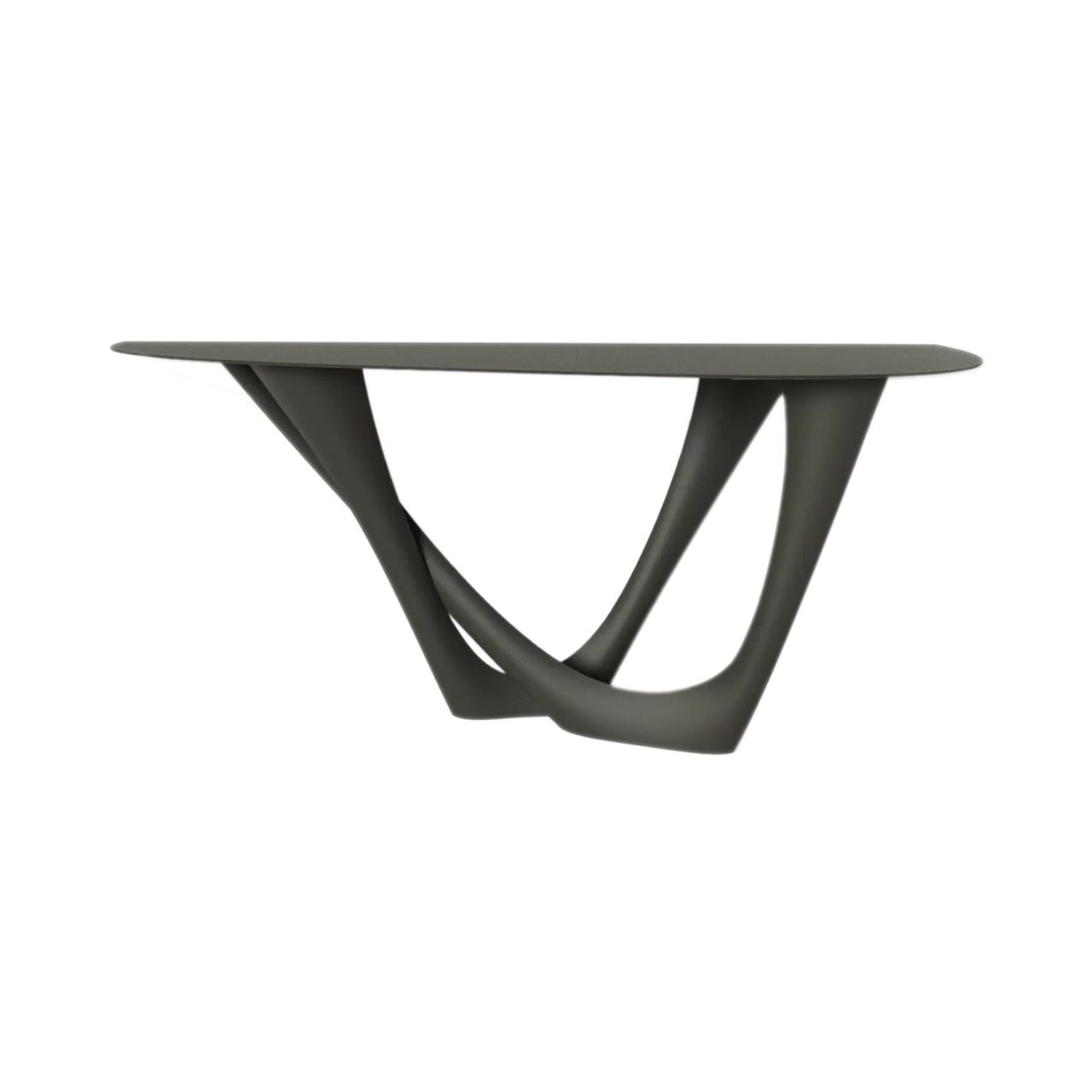 Duo is the slightly larger version of the pair of consoles adapted from Zieta’s signature G-Table. Ideal for tighter spaces, it employs the same curved base which abstractly suggests tree roots or twisting vines. The fluidity of the 3D expression owes to the company’s proprietary technique which inflates thin steel sheets into wondrous forms, in a choice of finishes to complement the chosen tabletop selection.