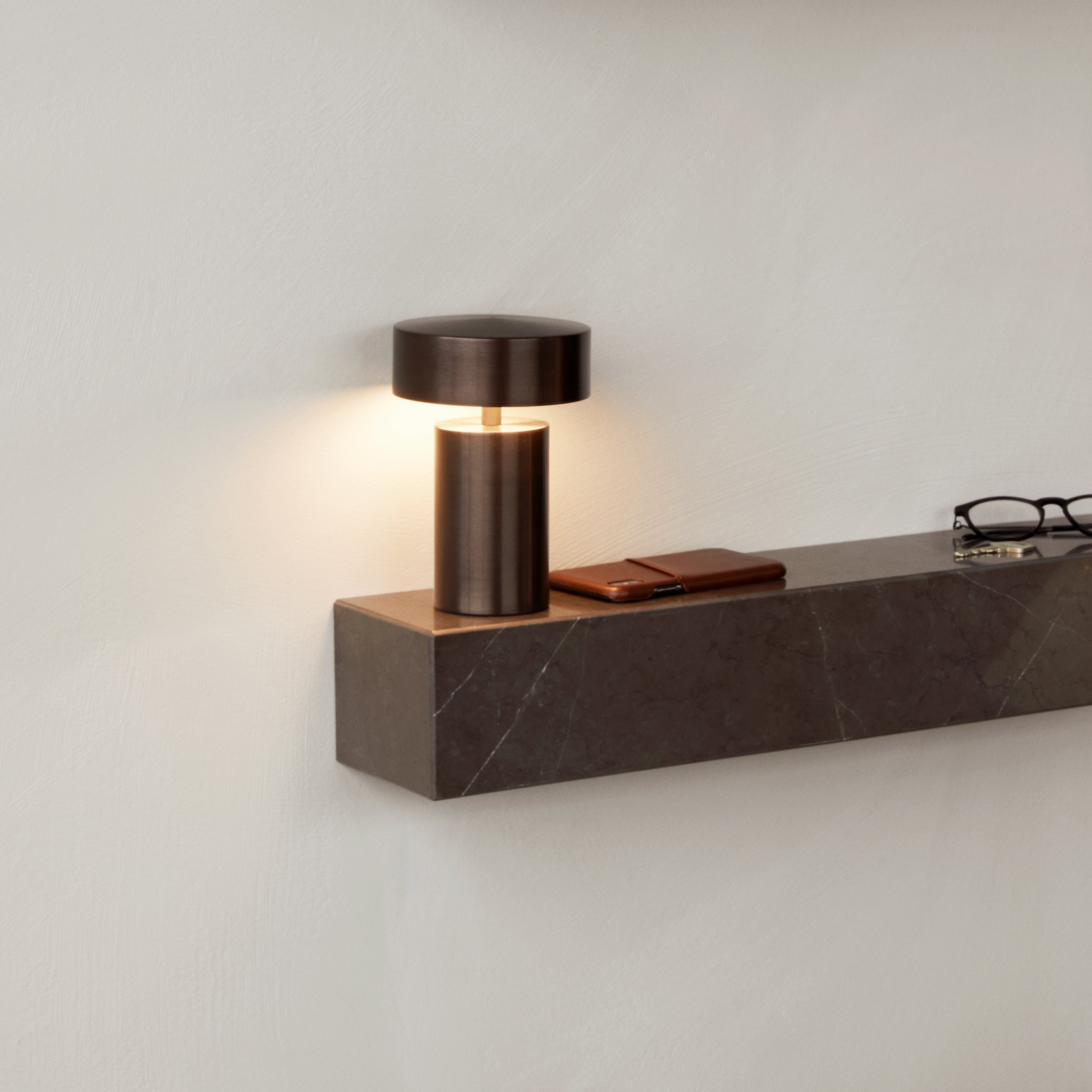 As striking as it is functional, Audo's LED table lamp spreads softly diffused light with 3 different settings. Norm Architects took seagoing lore and the bollards that hold a ship's rope as inspiration for Column's cylindrical form, fashioned in bronzed anodized aluminum. Handily portable, the cordless rechargeable lamp (via a USB charger) sails from dining room to coffee table to drinks on the patio.