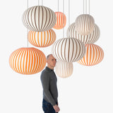 Inspired by the voluminous, billowing forms in the sky above, designer Sebastian Wring unveils a stupendous cluster of 9 Filigrana pendants suspended below a minimal ceiling fitting. Redefining the expression “wow factor,” Cloud’s fixed composition of mouth-blown glass Cylinder and Ellipse lights is produced by Italian artisans in a painstaking process that dates to the 16th century. Providing gently diffused illumination, each individual shade is thus completely unique, complemented by its white powder-coated steel fitting and clear PVC hanging cable in this tour-de-force constellation.