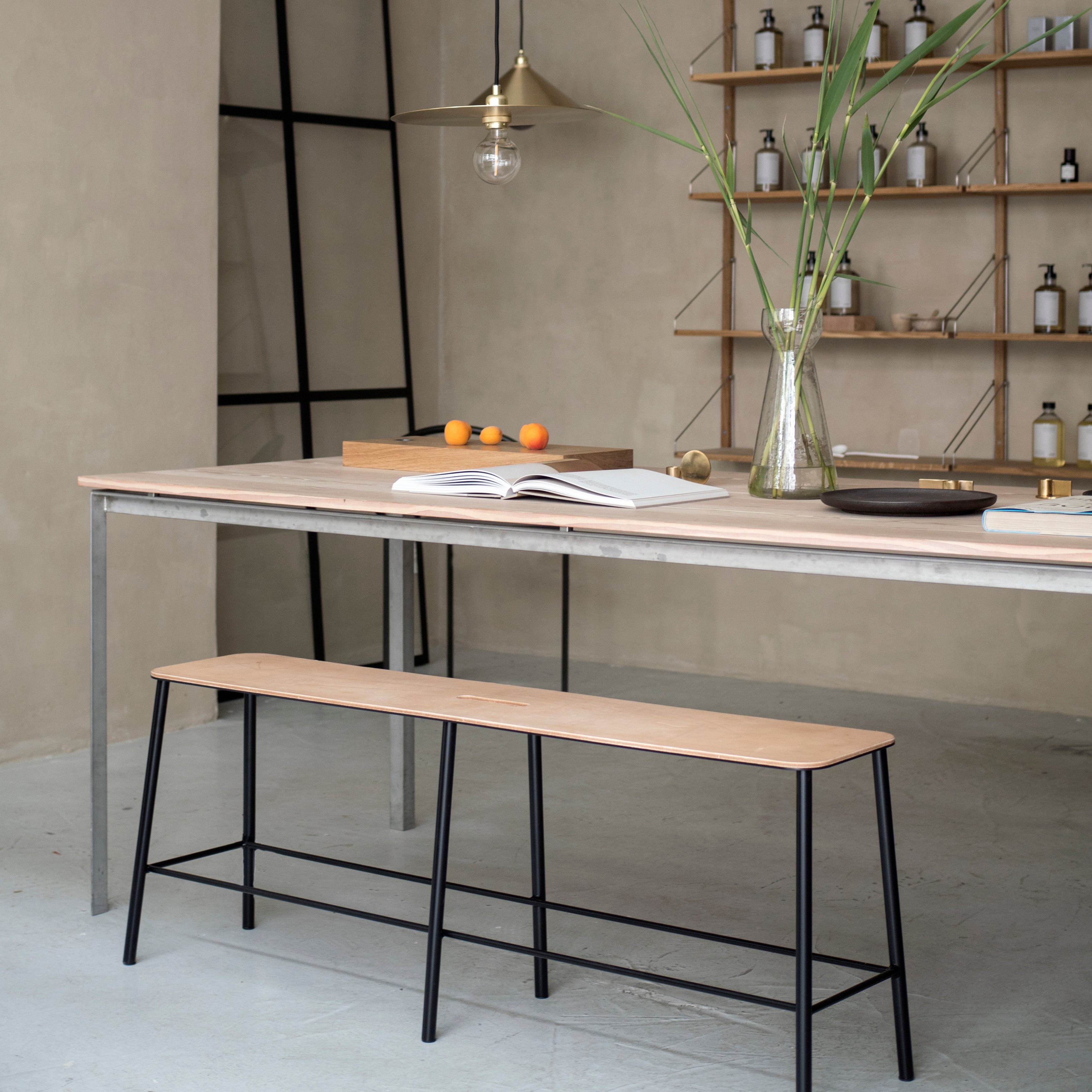 A deft take on industrial style, Frama adds a matte-finish black bench with a natural oak seat to the Copenhagen brand’s Adam collection. Designer Toke Lauridsen’s versatile piece is the right height to pull up to a standard dining table or desk and can also be used as a perch in a hallway or as versatile extra seating elsewhere in homes and workspaces. Combining outstanding functionality and the durability of strong materials, the steel bench’s timber seat adds a warm Nordic note.