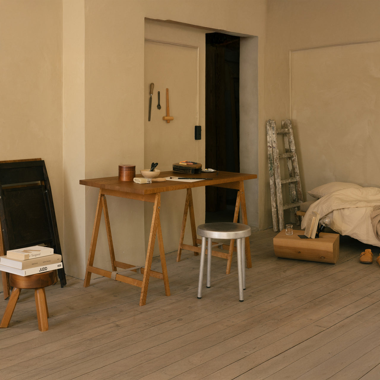 Embracing both old and new, the range spans the painstakingly made but deceptively simple AML wood stool, to the dramatic 64 Bench with its marble surface atop an incline steel base. In turn, the aluminum Rivet storage models and the sleekly multipurpose Adam stool series are striking examples of everyday utility. Unified by an organic sensibility and hands-on aesthetic, Frama is nothing less than a redefinition of a lifestyle brand.