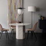 Gravity frankly explores the forces of nature with the floor lamp’s weighted cylinder base contrasting with the lightweight airy shade. Space Copenhagen takes an understated tack with the design, offering the base in either rich marble or tactile blackened steel. Playing off notions of strength and fragility, the lamp reads as a sculptural whole to provide beautifully even ambient light.