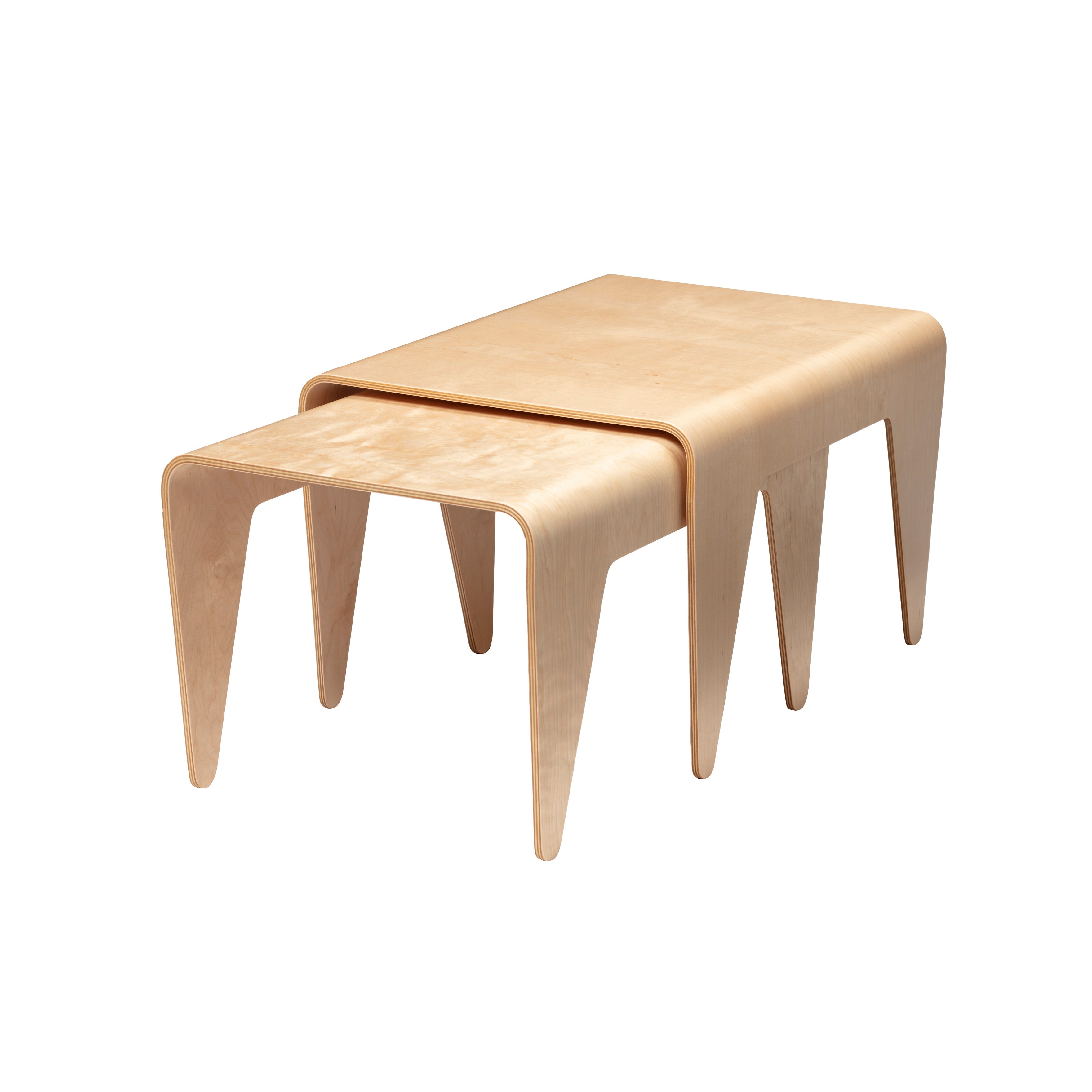 Originally part of a series designed by Marcel Breuer in 1936 and regarded as a bench point of 20th century furniture design, the set of Nesting Tables makes a versatile pairing, extending as needed and then nestling back to save space. Each one is formed and cut from a single piece of 11mm birch plywood and made in London with maker Isokon’s unrivaled care.
