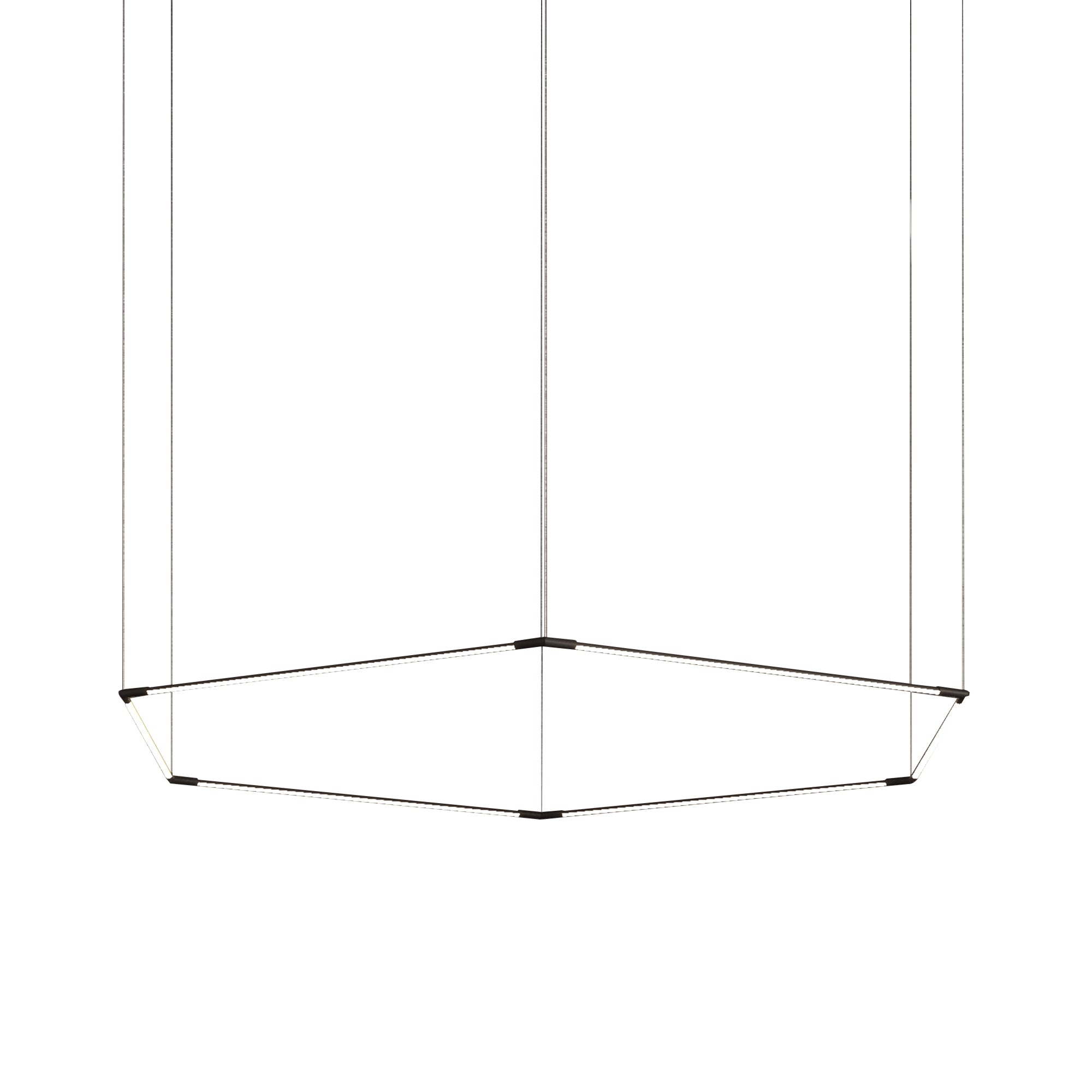This geometric shape is a stunning variation on Peter Butler’s signature Thin Primaries lighting system for Juniper Design. Available in either suspended or wall-mounted options, it creates a mesmerizing silhouette while still providing functional lighting for commercial, residential or hospitality settings. Individual fixtures can be clustered, expanded or interlocked to easily create custom installations with its fully rotatable light segments and magnetically connecting ends.