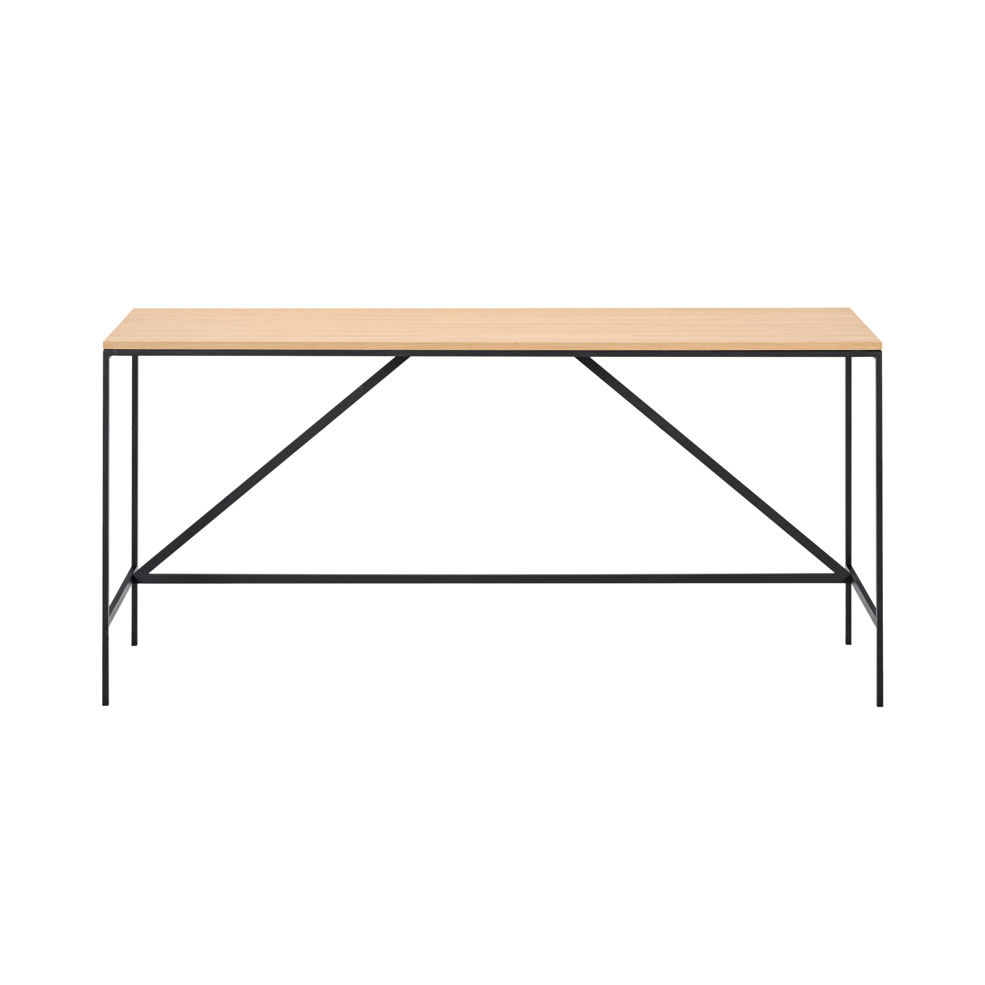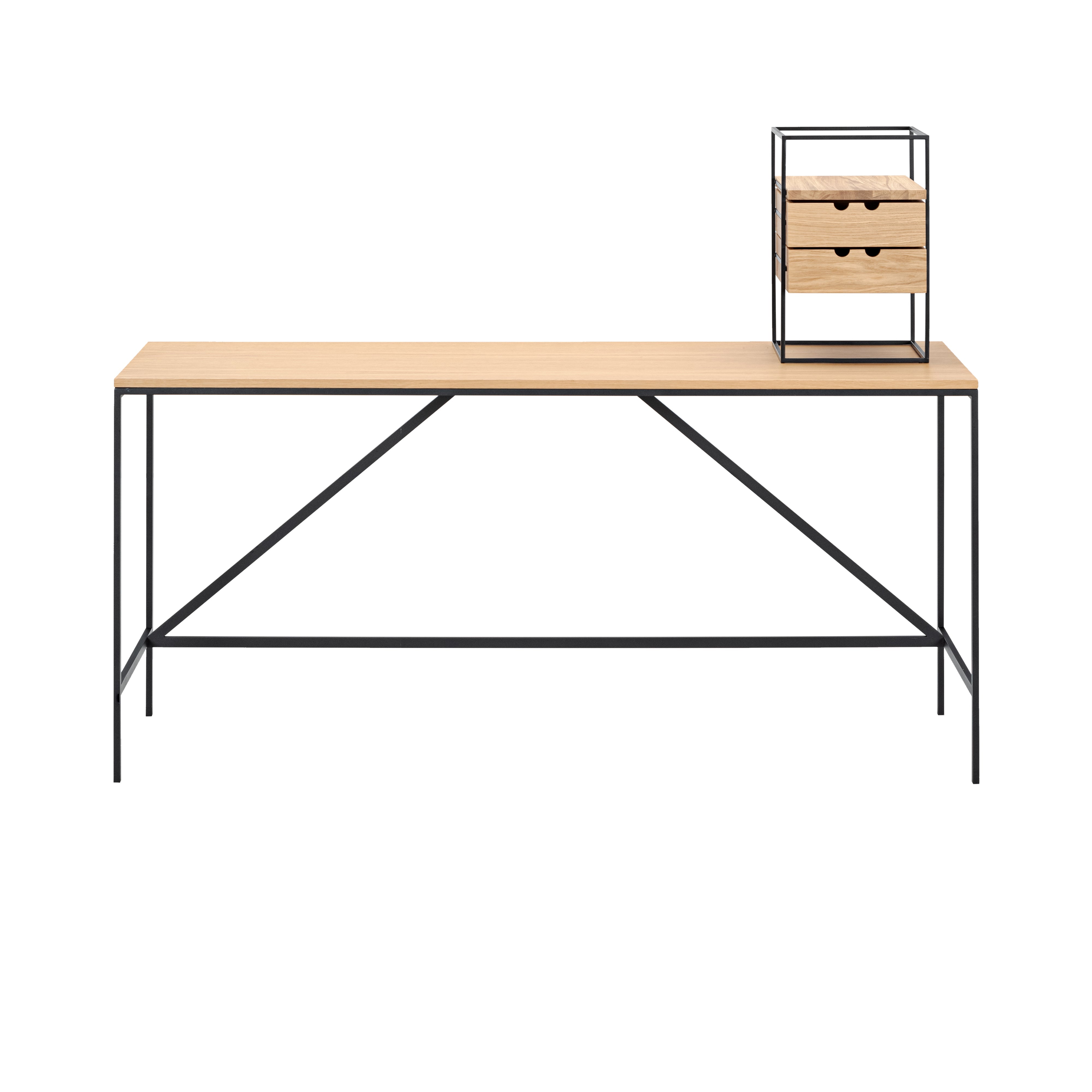 The foundation of his Cache series, midcentury design icon Paul McCobb's stripped-down worktable pairs an expansive wood surface with slim, straight steel legs, free from any superfluous details. Cache adds only 2 small drawers for bits and bobs that can be mounted individually or grouped on either side. With a lacquered tabletop in oak veneer and powder-coated framework, the sleek and unadorned desk also offers an optional organizer with the same look (also at A+R).