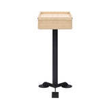 Poised on a slim metal stem, Comodo can be used as an occasional table, at bedside, as a serving tray or simply as a stash for hiding treasures. Its designer, Achille Castiglioni, a big fan of sweets, supposedly used his as a deluxe candy box. Featuring a lidded compartment made of solid and veneered oak in a choice of natural or black, Karakter’s multipurpose piece is mounted off-center on its black powder-coated steel stand with a asymmetrical flourish at the base.