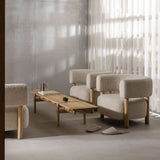 Nestle in the luxurious confines of the low-slung Notabene Lounge Chair, with its soft contours upholstered in lush bouclé and situated on cylindrical legs in solid wood. Norm Architects initially conceived the seating for the holistic Copenhagen shoe brand’s flagship before it was added to Karimoku Case's lineup to grace a range of environs.