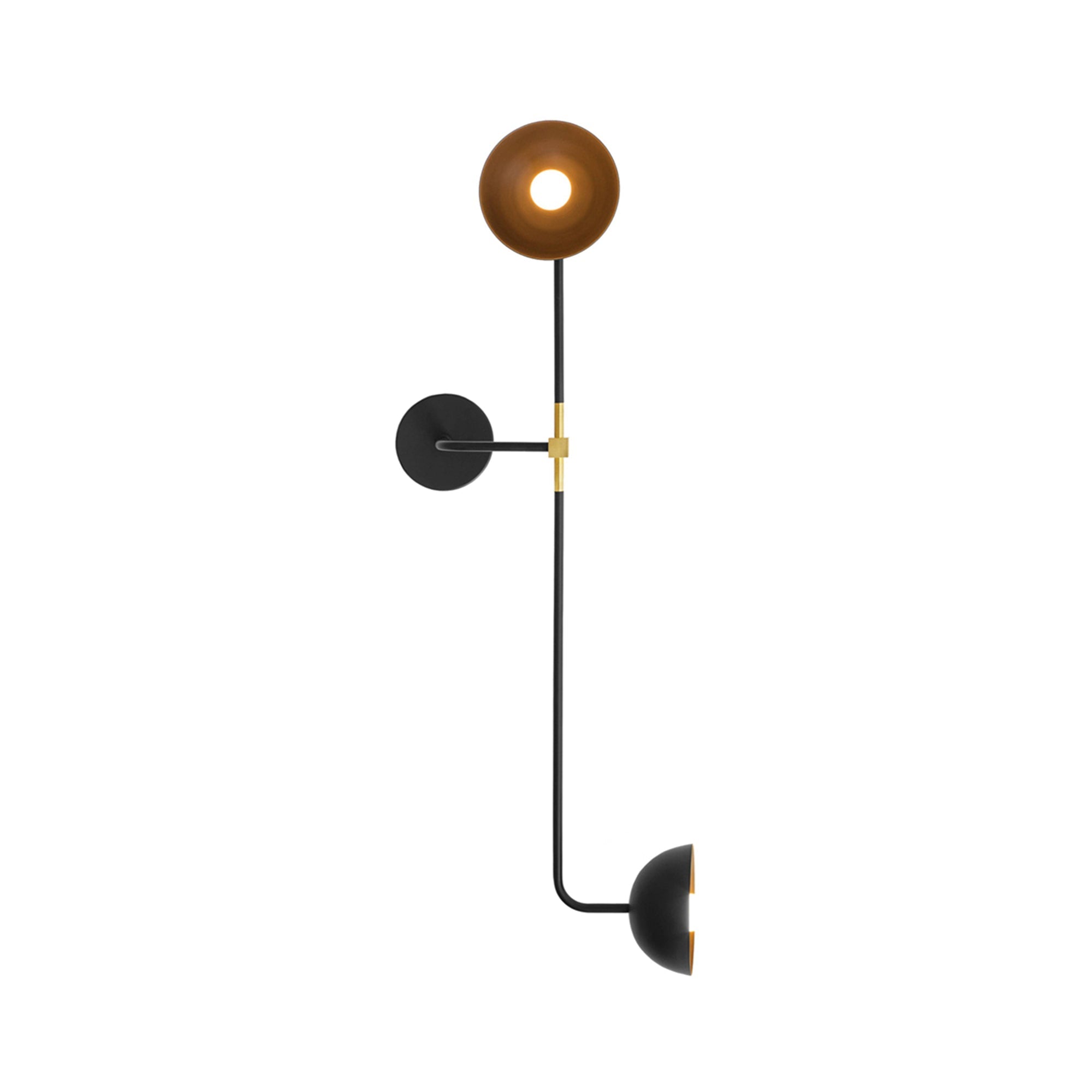 Beaubien extends the collection’s industrial aesthetic in a handsome double-light wall model. Two metal shades are mounted on a steel rod with one facing out, the other sideways—and the fixture can be mounted either vertically or horizontally as needs dictate. Milk glass globes provide warm, diffused LED illumination as it’s reflected off the shades’ golden interior. Lambert & Fils' uncommon lighting is completely handmade at the brand's Montreal atelier.