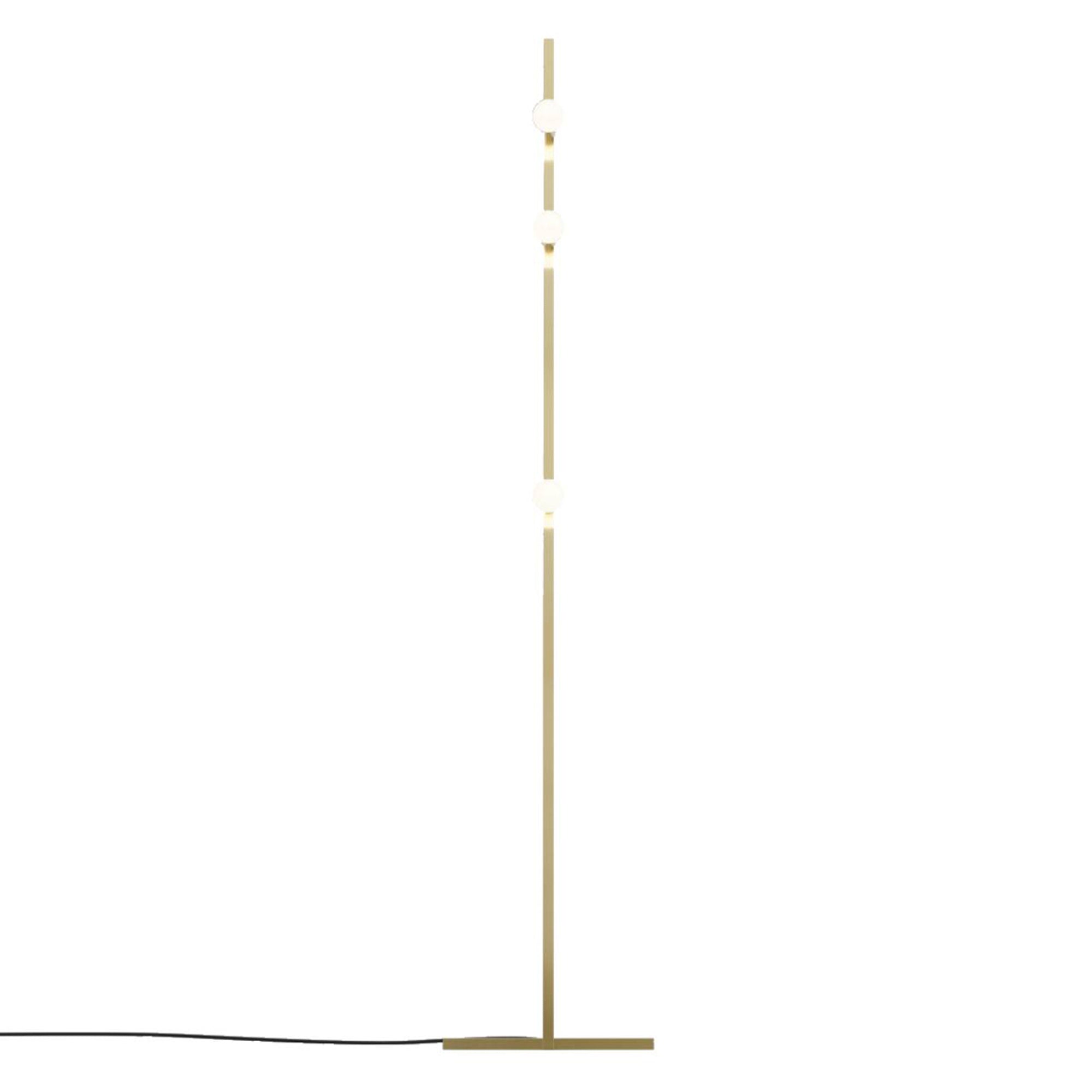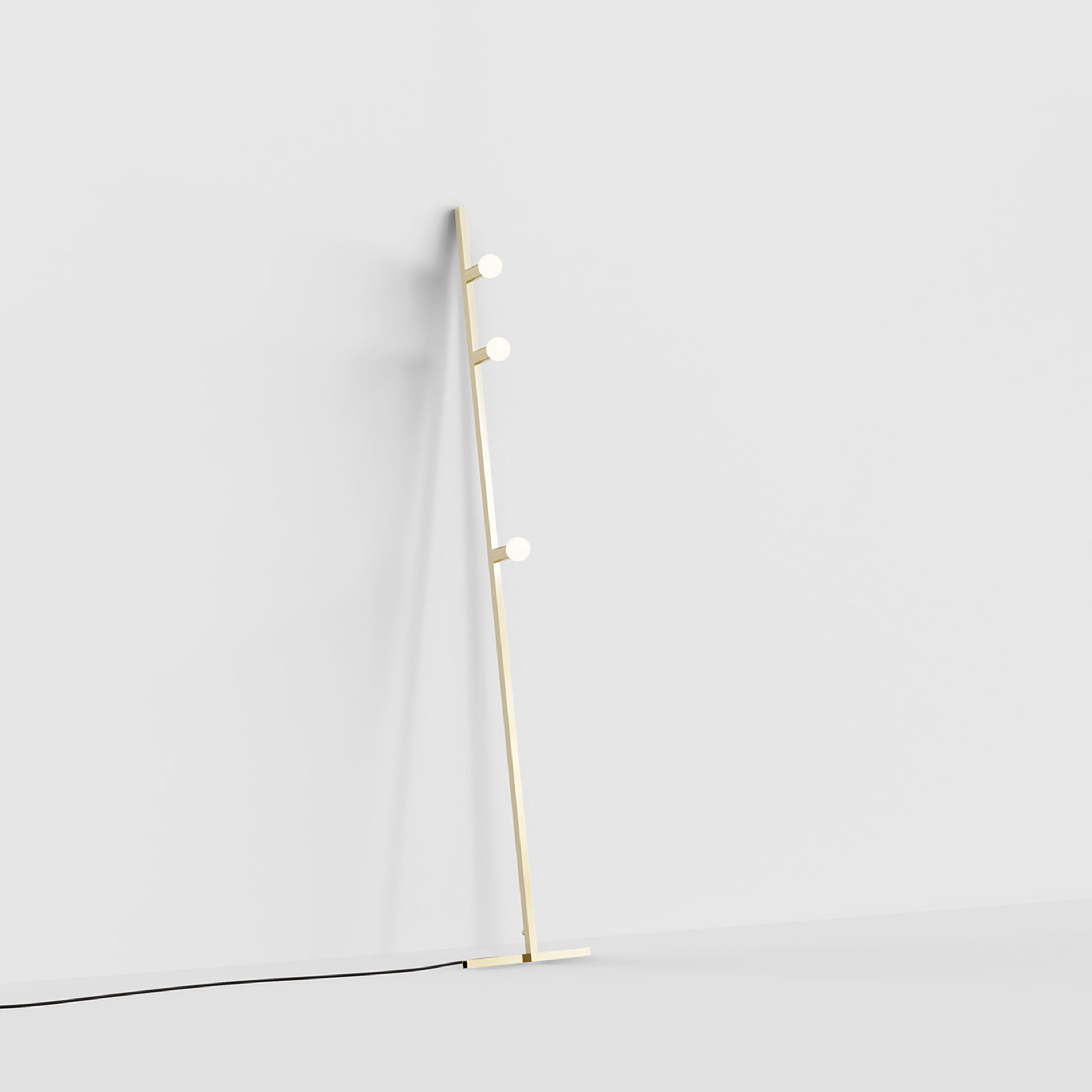 In the floor version, Lambert & Fils styles its linear Dot to lean against a wall, supported by an inverted T-shaped base. The slender lamp features exposed milk glass globes that provide an ordered sequence of gently diffused LED points of light. With a choice of brass or graphite finish, it’s completely handcrafted at the lighting maker’s Montreal atelier.