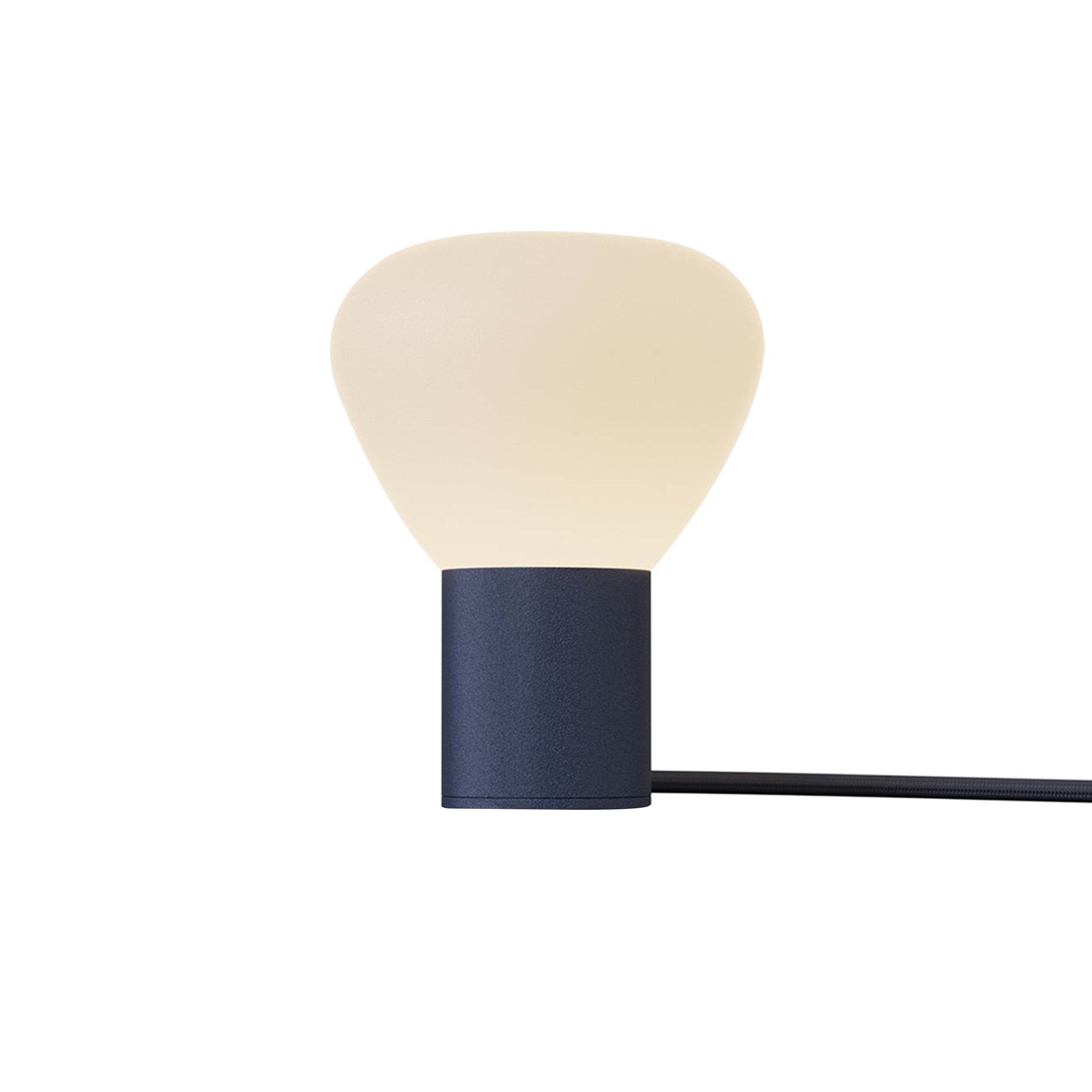 Hand-blown frosted glass, powder-coated aluminum, polyester