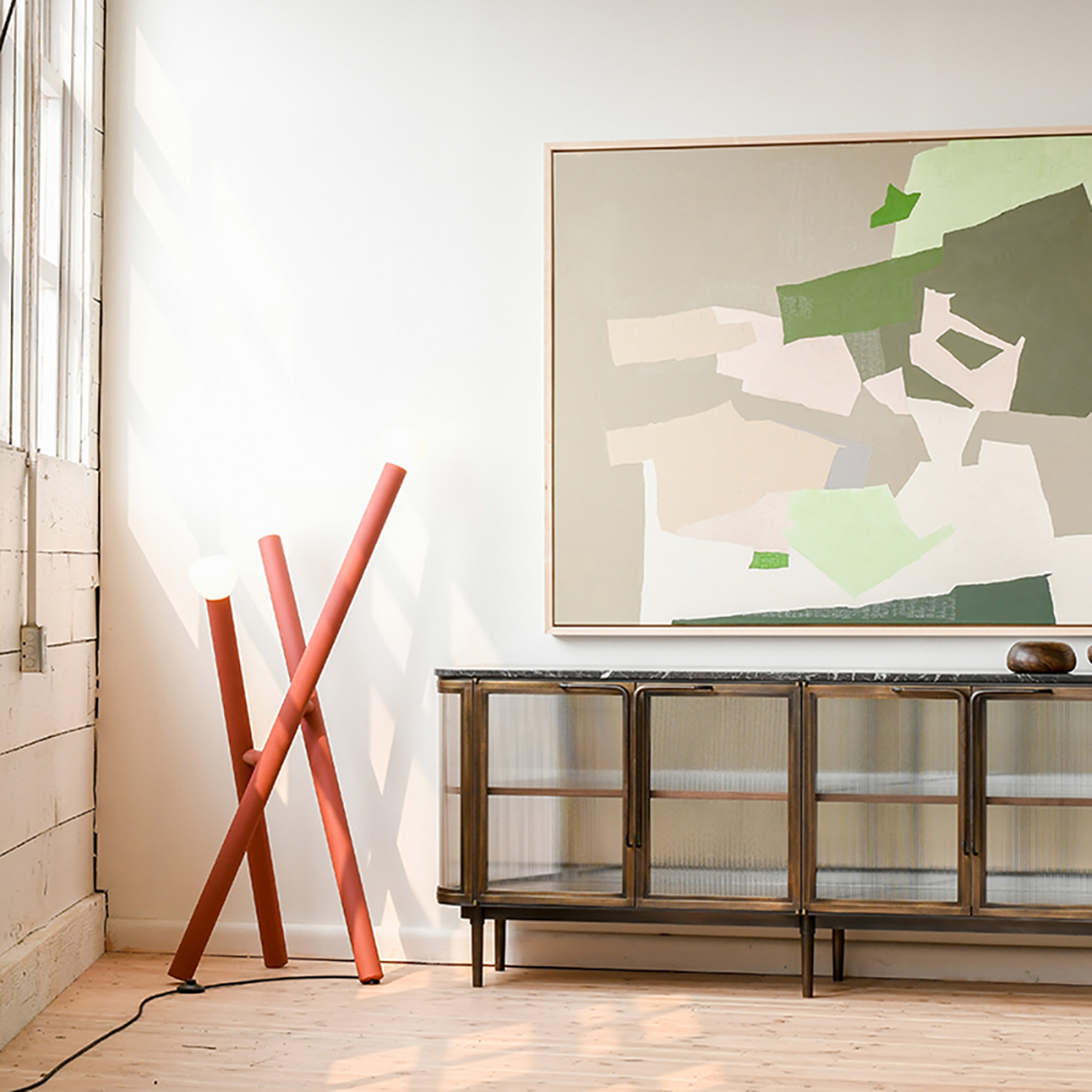 Like a bunch of pick-up sticks, Swiss designer Adrien Rovero takes a whimsical tack with Parc 05. Collaborating with Canadian lighting brand Lambert & Fils, her floor lamp transforms its original inspiration from a prosaic flashlight in a luxe mix of handblown frosted glass, a fine powder-coated aluminum body. Available in an array of colors, the light is completely handmade at the brand’s Montreal atelier.