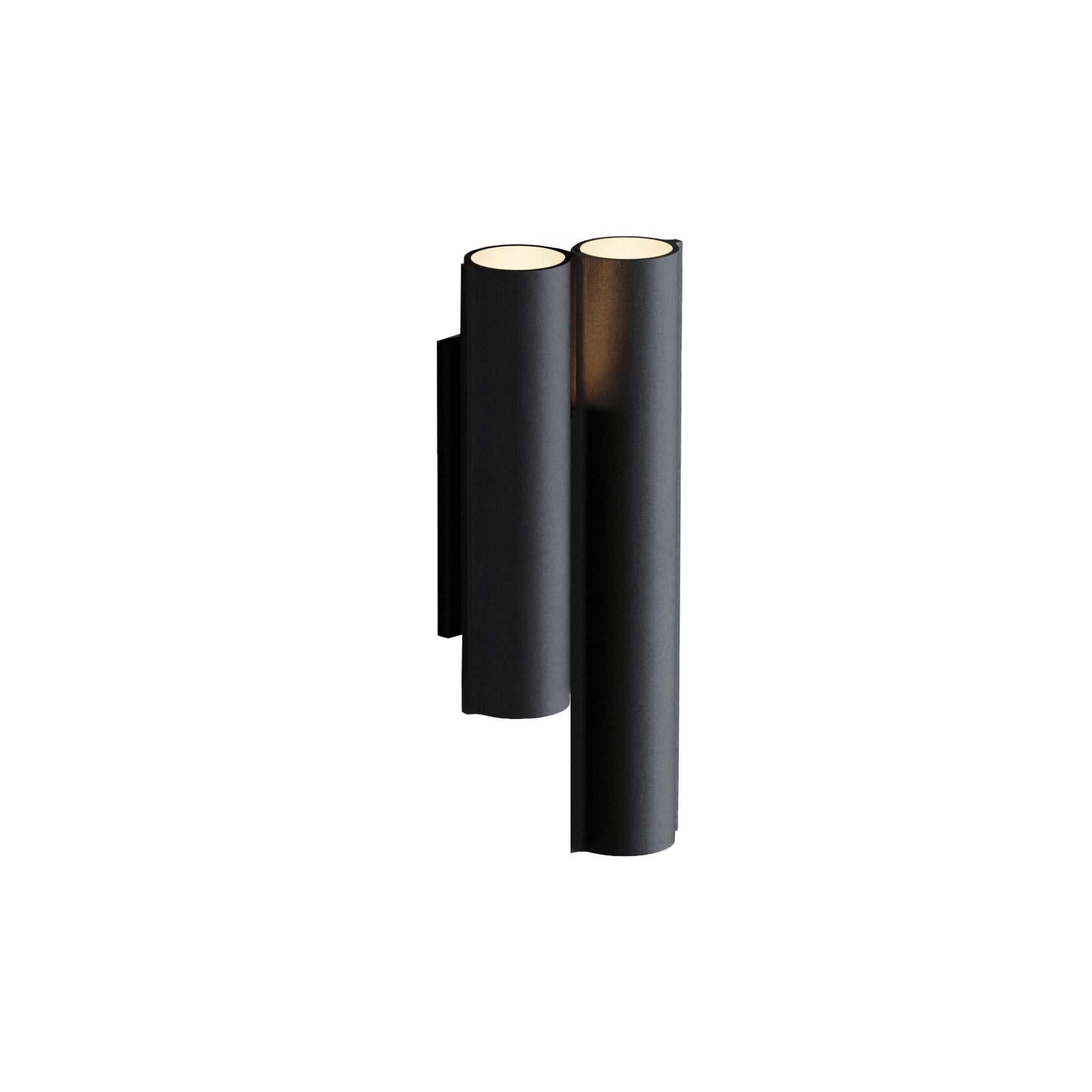 The Silo 2WM Wall Light casts a gentle upward glow through its twin cylindrical structure, formed from custom aluminum extrusions. A polycarbonate lens helps soften and distribute the light evenly. Finishes include powder-coated, mirror-polished, and tumbled aluminum, allowing for a range of visual expressions. The fixture supports various color temperatures—including dim-to-warm functionality—and is compatible with both 0–10V and phase dimming systems.