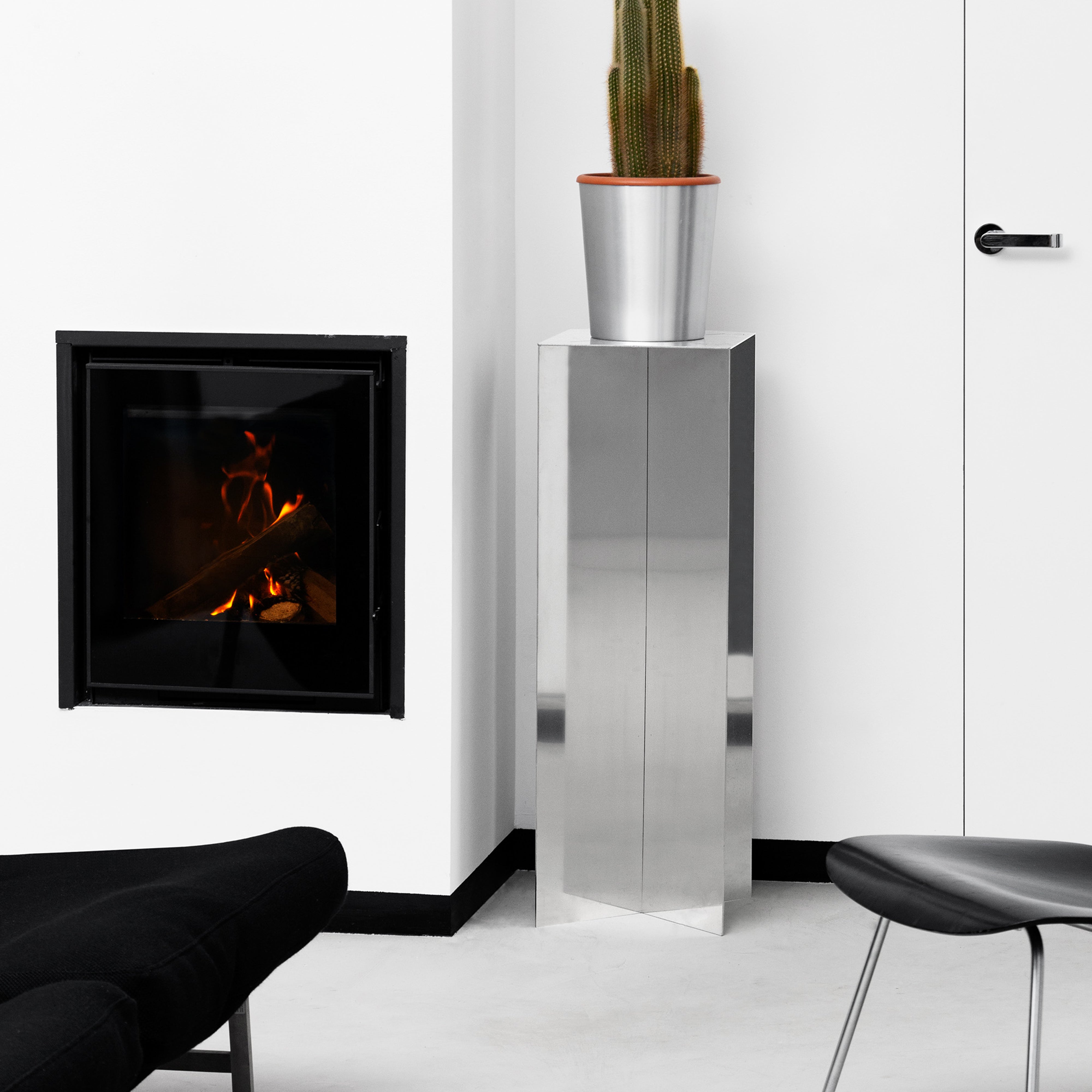 Crafted from 3 mm BA Inox stainless steel, this square pedestal embodies NM3’s industrial design language through its precise laser‑cut form and dry‑joint assembly, free of welds or coatings. It offers a sturdy, minimalist platform ideal for displaying objects. The uncoated surface preserves the raw texture of the metal, resisting wear and retaining its sheen through regular use.