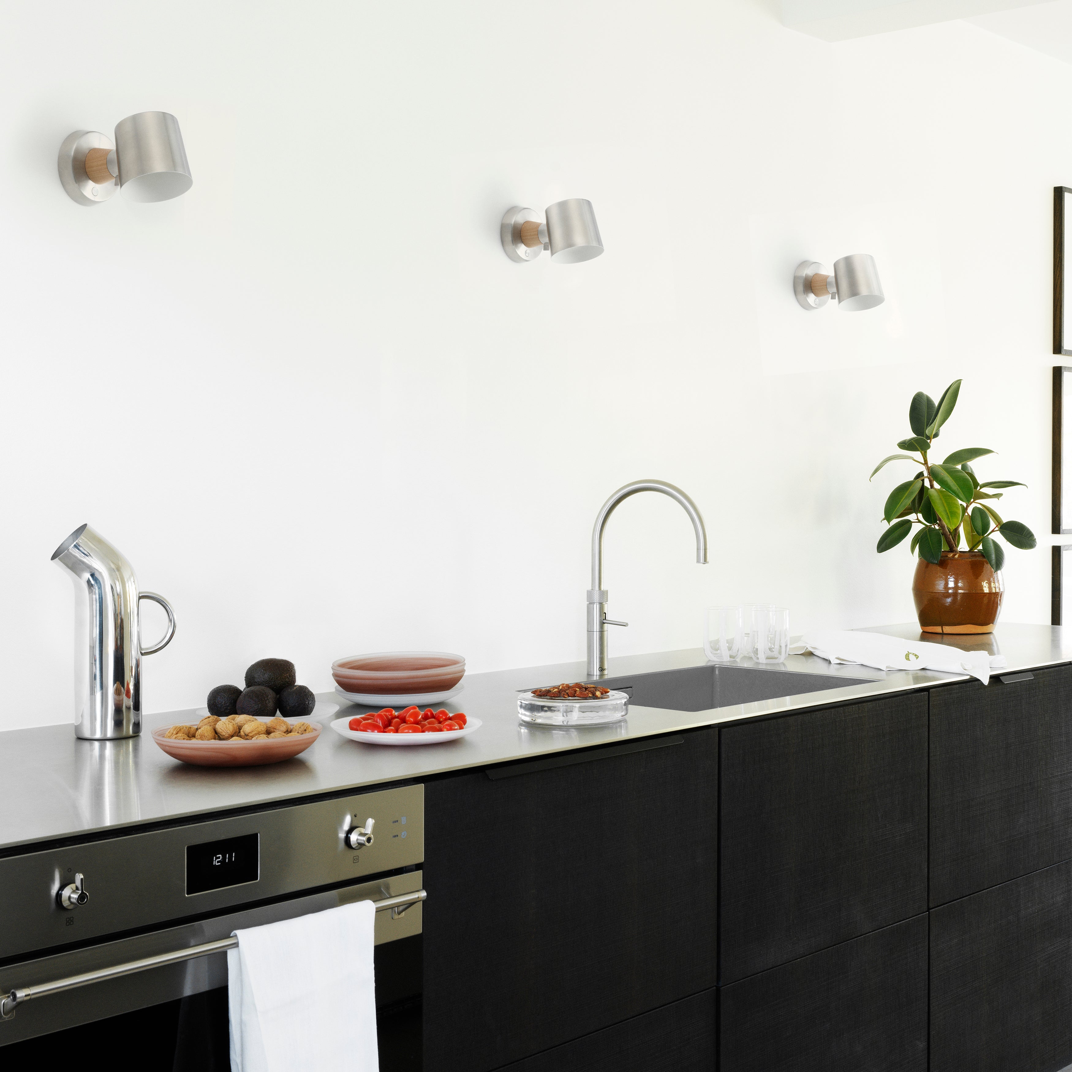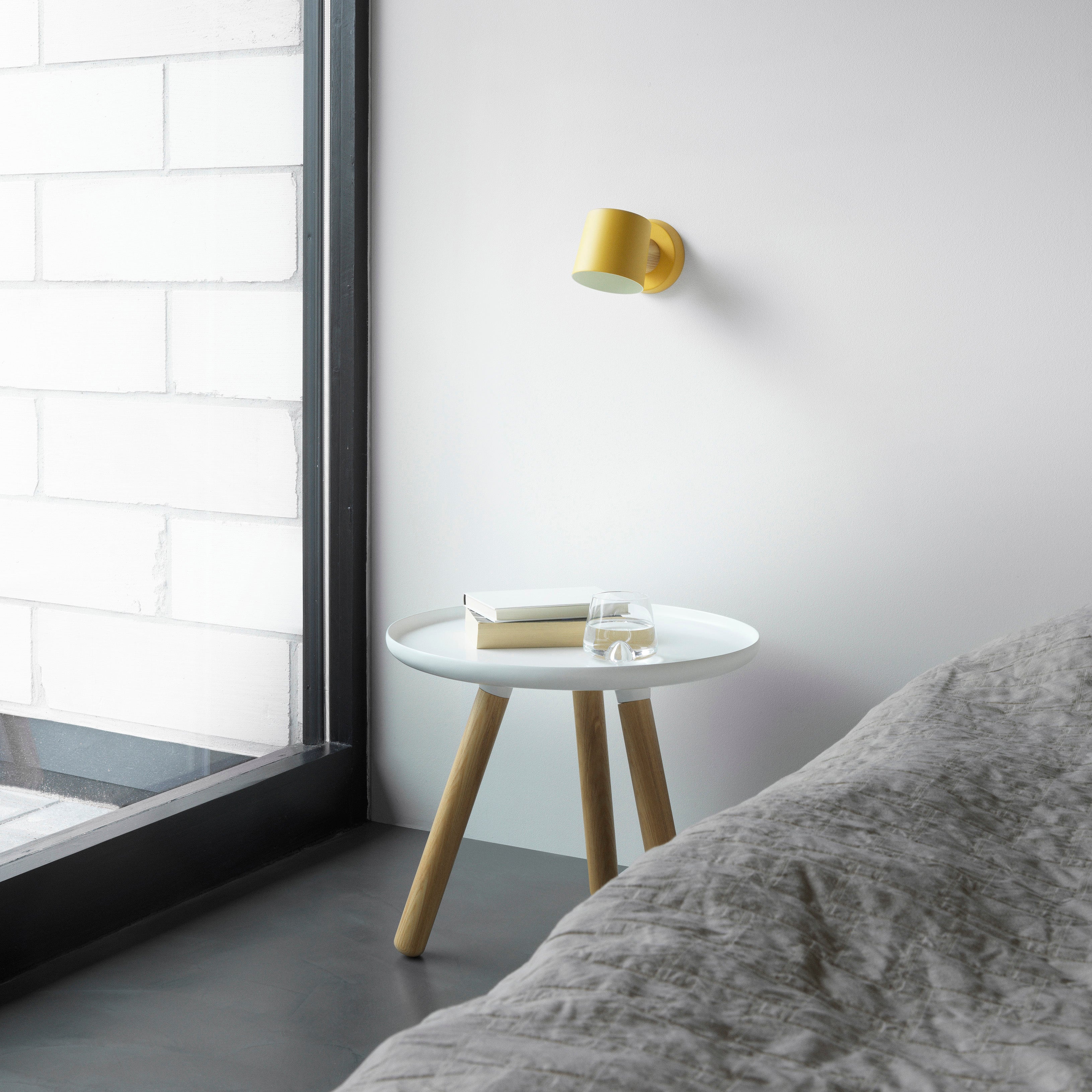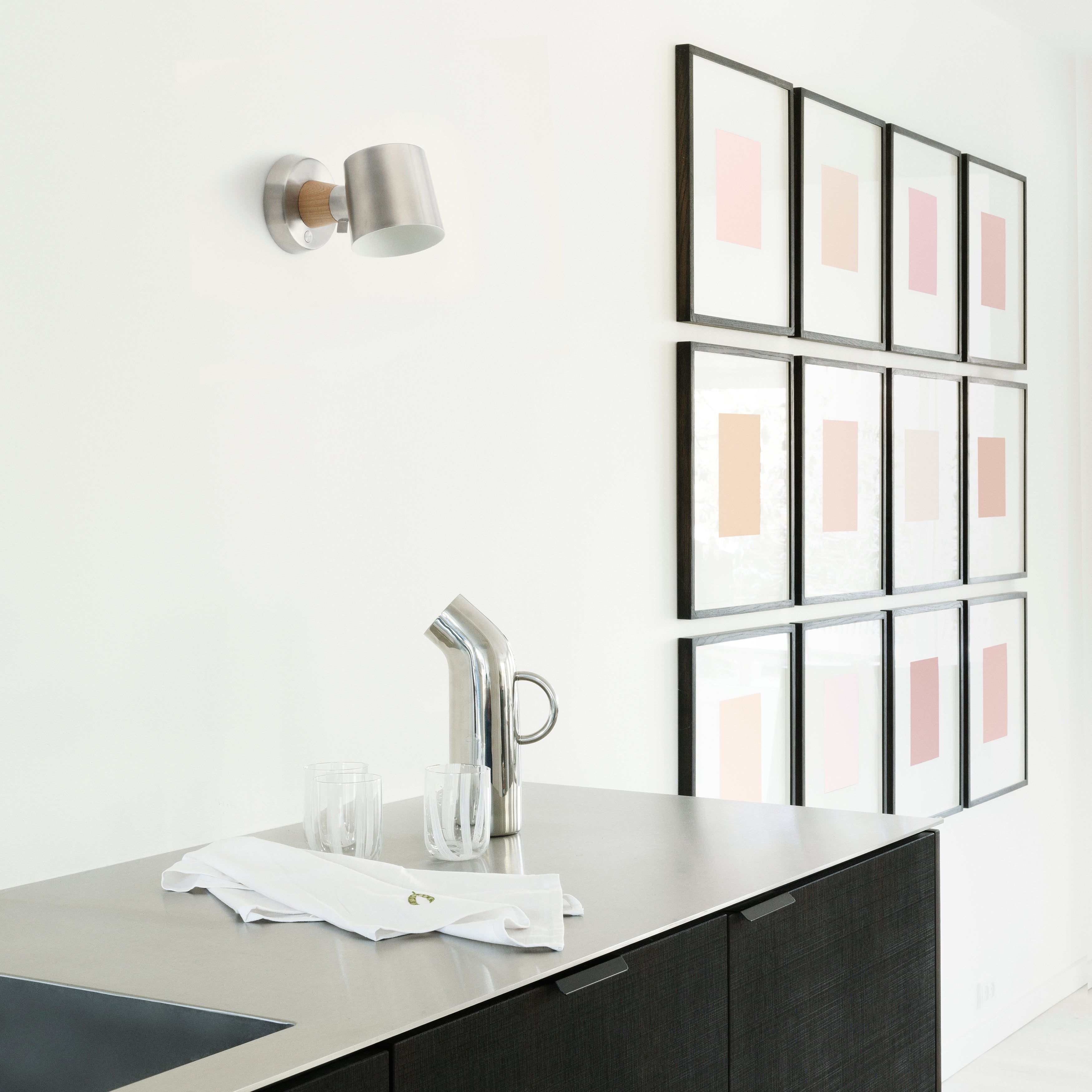 Rise is a snappy little wall lamp that pairs industrial-style metal with appealingly natural wood grain. Designer Marianne Andersen starts with an ash wood base fitted with a turning joint that allows the shade to be rotated for either direct illumination as a reading lamp or for an indirect reflected glow. Available in three neutral shades—white, black and grey—or choose petrol green or bright yellow for a pop of color.