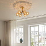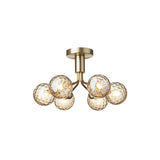 A ceiling-mounted version of Noura’s collection pendant, Apiales 6’s height makes it eminently suitable for rooms with limited drop space available that still call for a chandelier-like fixture. The subtle expression of the radiating frame in either a rich satin black or warm brushed brass metal brings character to any setting. Sophie Refer’s characteristic design is topped with hand-blown globes in either clear optic smoked glass or opaque opal, adding a dynamic play of light and shadow to the atmosphere.