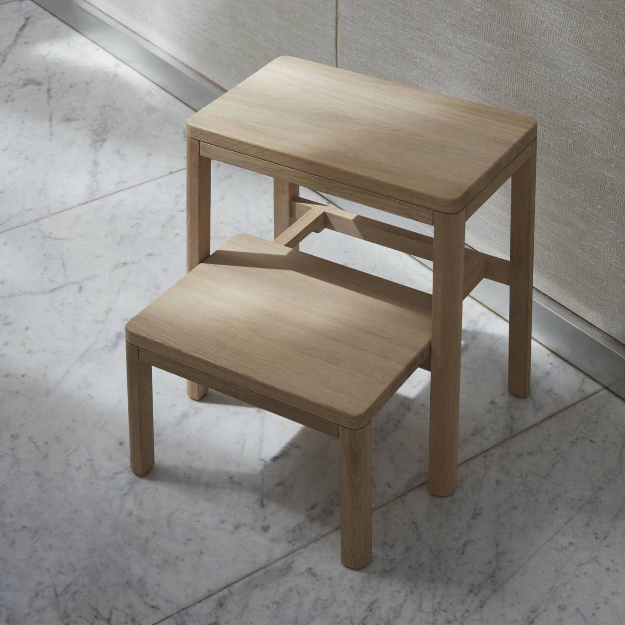 Noboru (meaning “to climb” in Japanese) takes inspiration from the American Shaker movement and its efficient simplicity as a minimalist stepladder that easily turns into a stool or side table. Designed  by Canadian duo MSDS Studio, the lower step can slide in and out with the aid of a short handle under the surface. Crafted in gorgeous solid oak, it has a slim profile that counters the usual tool-like feeling of such pieces, say the designers. “We wanted to produce a step stool that could be unobtrusive and useful when it wasn't being used for accessing the out of reach.”