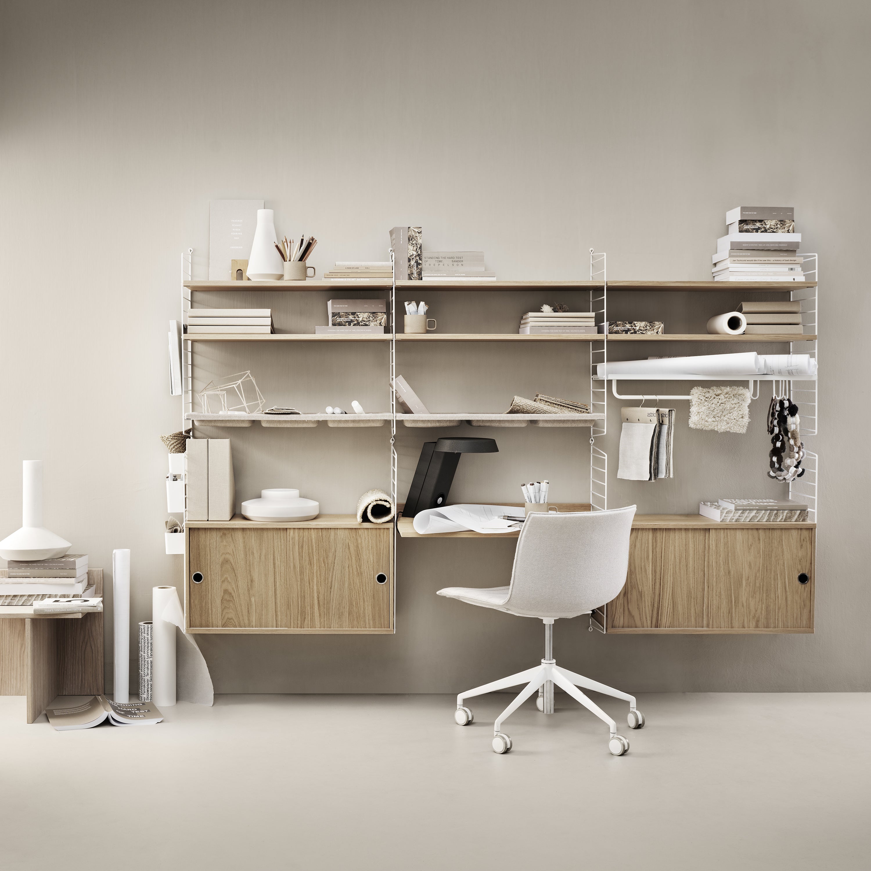 Based on a ladder-like, coated-wire framework, it was lightweight, versatile and redoubtably stable. Not to mention quick to assemble, easy to reposition and little trouble to transport. String was an immediate success far and wide—especially with a newly identifiable younger generation. Just a few years later, in 1950, the shelves were even ordered for the new UN headquarters in New York. String continues to produce the timeless original designs as well as updated versions for both residential and office spaces.