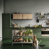 With a handy flip-up opening, String System adds a roomy cabinet that fits together with all 30-cm-deep wire and plex panels. Featuring a single adjustable inner shelf, the cabinet’s door comes in either wood veneer or solid-color MDF, both with a lacquer finish. First unveiled in 1949, Swedish designer’s Nisse and Kajsa Strinning’s beloved system once again extends its handsome range of storage options.