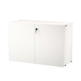 This modular storage unit offers secure and efficient organization while integrating seamlessly into a customizable shelving system. It features a lockable door with two included keys and push-open fittings for easy access. Inside, two adjustable shelves allow flexible storage for items such as binders, cables, or personal belongings. Available in finishes white, oak, and black-stained ash.